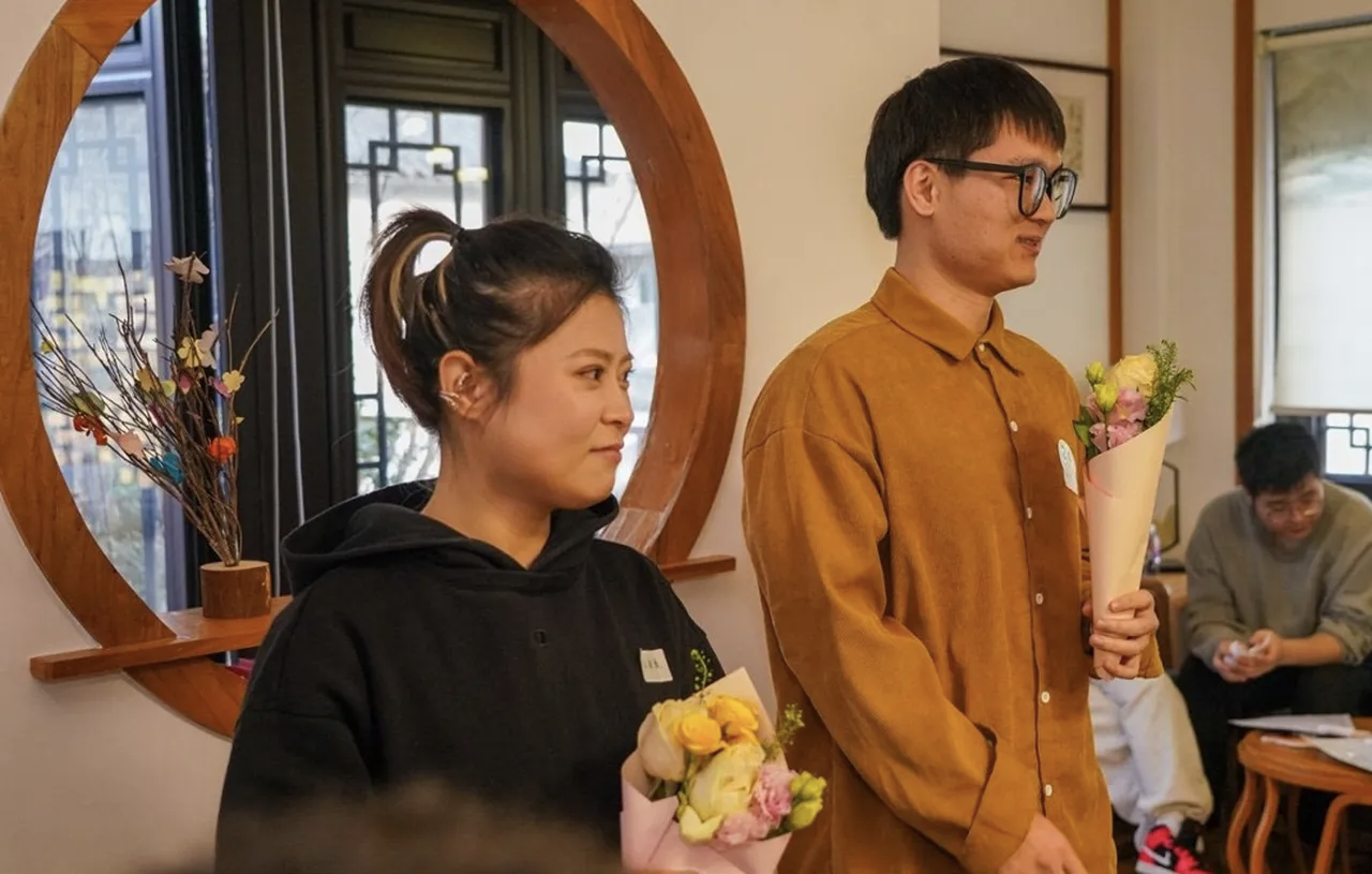 自由交流环节,嘉宾们围坐一桌,伴着悠扬的音乐品茶畅谈,从兴趣爱好聊到人生理想,气氛轻松而热烈。活动尾声的“心动告白”环节更是将浪漫氛围推向了极致,一对嘉宾勇敢表达心意,成功牵手,为活动画上了圆满的句号。