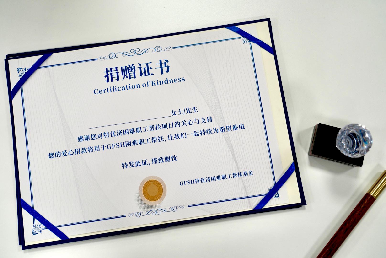 特优济捐赠证书