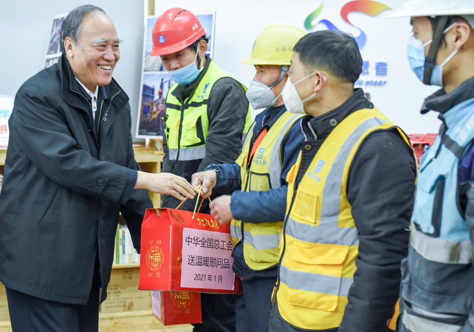 一路马不停蹄,下午,慰问团又亲切慰问了抗疫一线职工代表、劳动模范和困难职工代表。张少琴为他们送上了慰问品和慰问金并预祝大家过一个欢乐祥和的新年。他表示,希望大家继续弘扬劳模精神、劳动精神和工匠精神,在岗位上再立新功、再创佳绩。