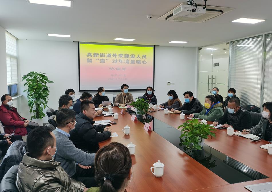 真新街道集聚了十大专业市场,是申城规模最大、外来建设者最多的连片专业市场之一,其中的轻纺市场、东方汽配城、丰庄茶城等商场广为市民所熟知。为响应市政府非必要不离沪,鼓励在沪过春节,尽量减少人员流动的倡议,以及表达对留沪外来建设人员切实的节日关怀,真新街道总工会开展了关爱外来建设者专项行动。