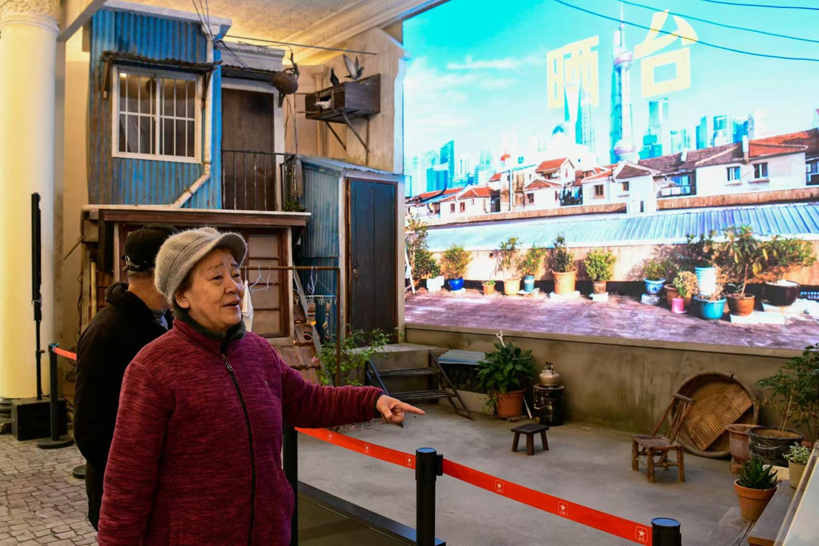 市民观看沪语情景短剧《晒台》。劳动报记者颜筱依 摄影