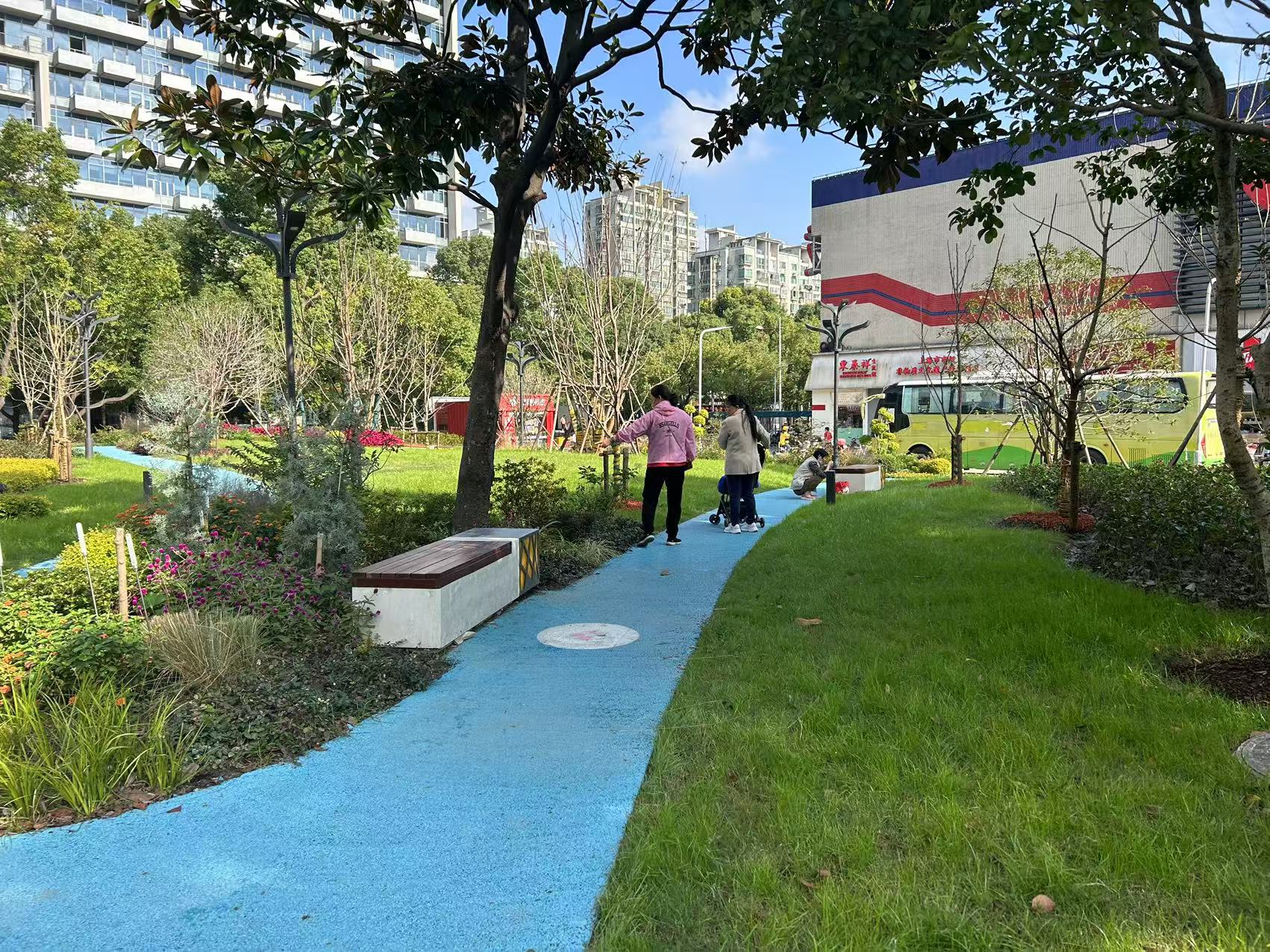 今年6月,位于杨浦区黄兴路国权东路路口东南角的大润发薇花园正式开放。“以前我们想找一个环境好点的地方散步,只能去600米外的黄兴公园。大润发薇花园开放后,穿过一条马路就到了。”家住黄兴公寓的朱阿婆表示。