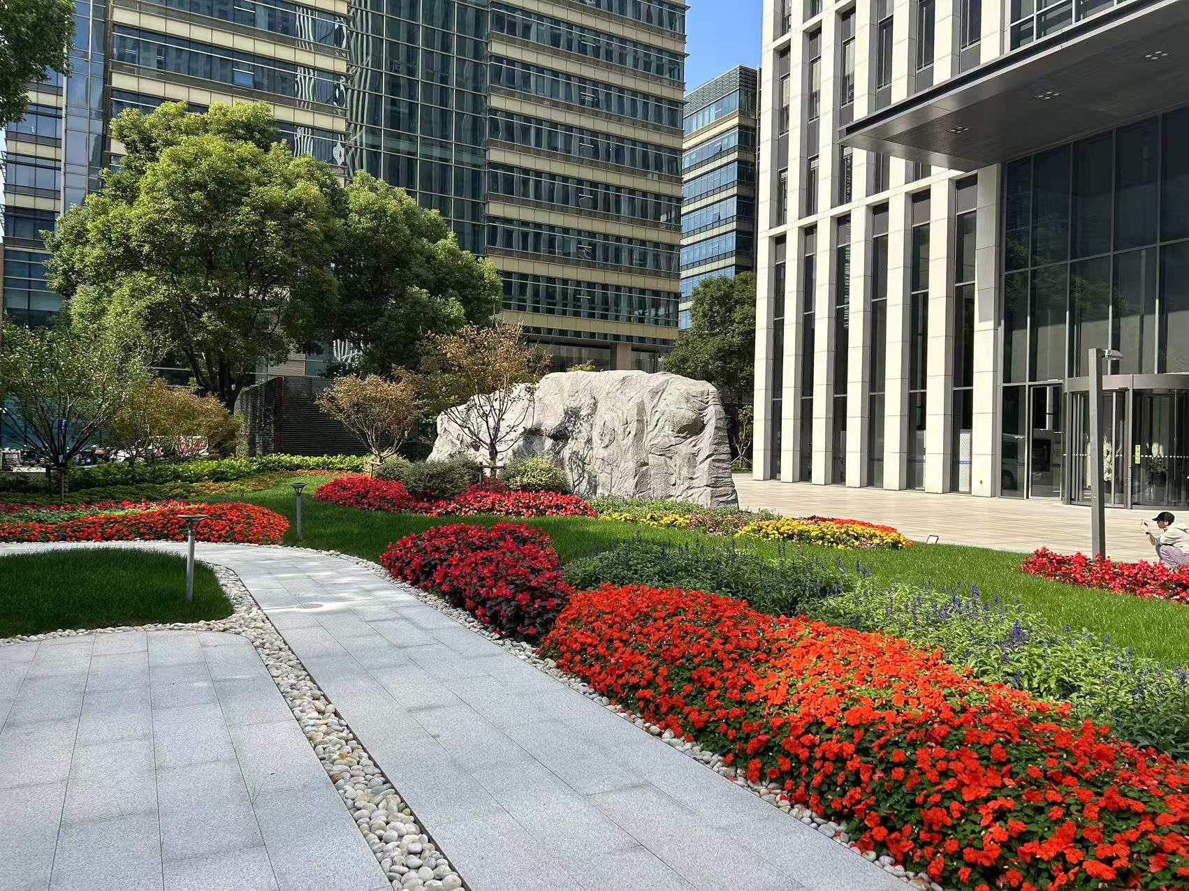 在浦东新区世博大道1919号南侧广场区域,中国商用飞机有限公司总部大楼附属绿地也于今年4月向社会开放共享。“围墙”拆除后,原先的1000多平方“自有绿地”和周边的4000多平方公共绿地连成一片,为附近办公楼的白领提供了休憩小坐的好去处。