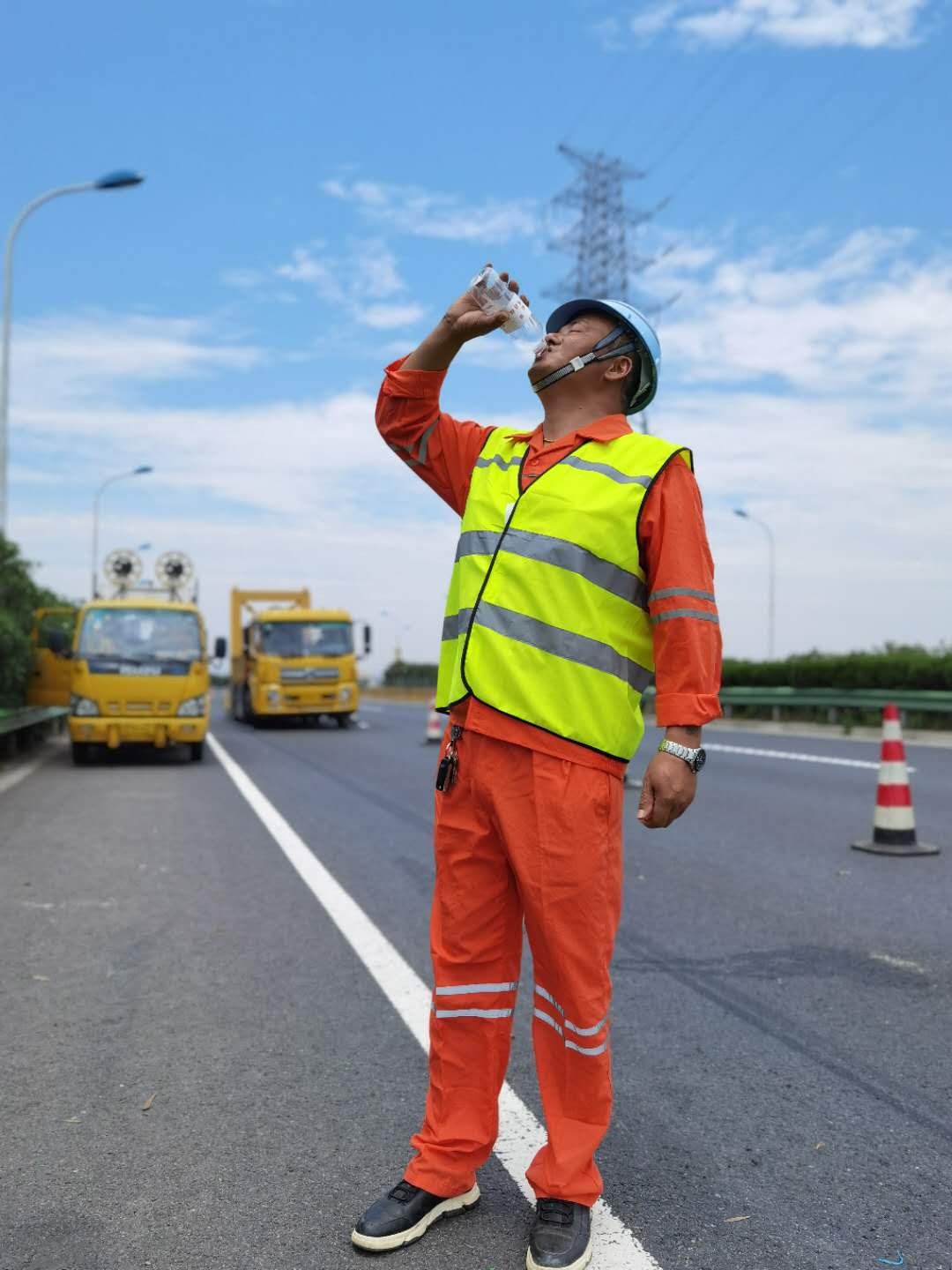 又比如说有时需要到桥面下部、桥墩处进行维护,“桥面温度30几度甚至40度,但是桥下因为有穿堂风以及桥面的遮阴作用,桥上桥下的温度会有十几度,强烈的温差会让人非常难受。”在大桥上工作了11年的周鹏师傅乐观地说,一般的高温对于养护工来说已经算不上什么挑战,桥面上各宗突发状况和高温合在一起,才是真正的挑战。