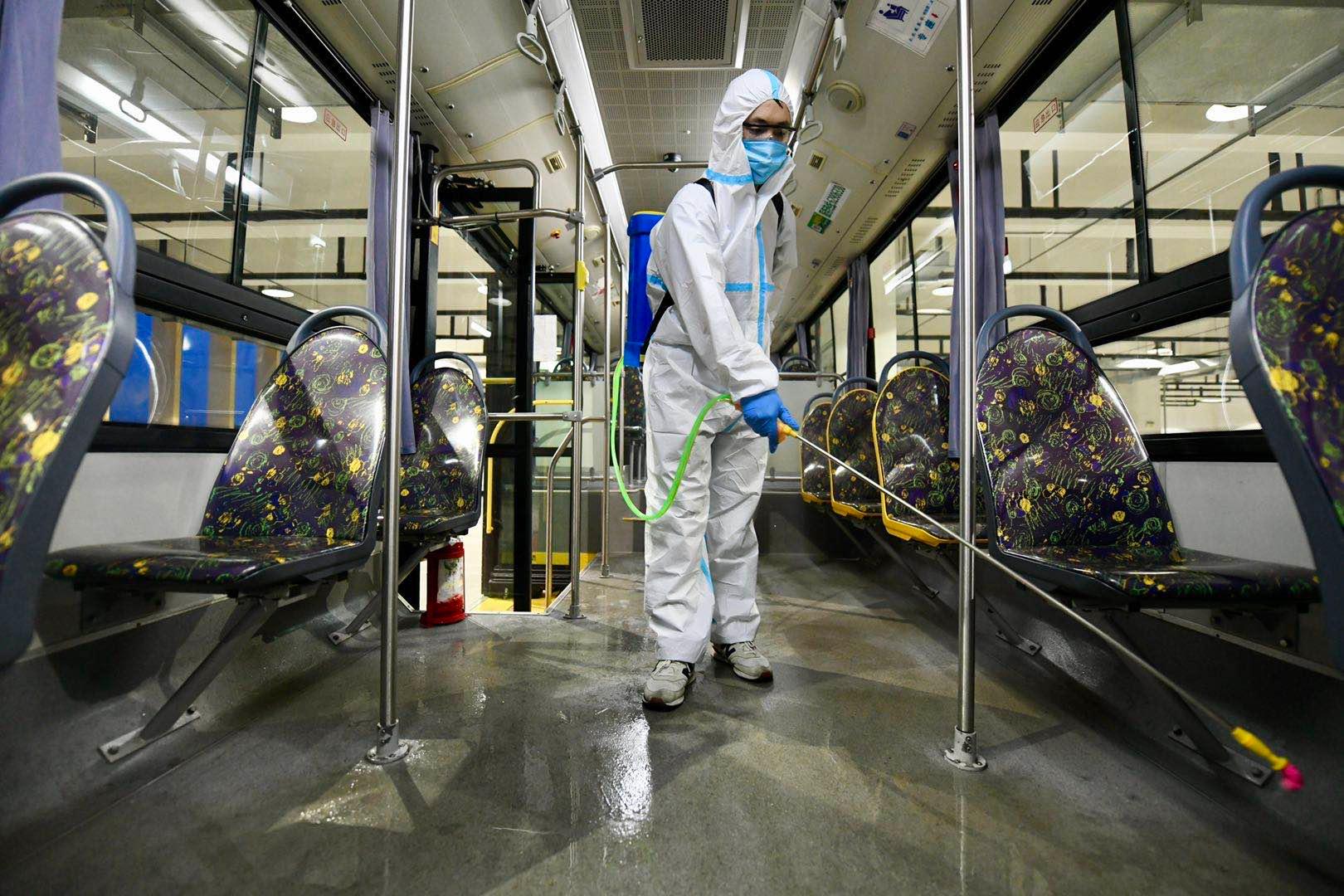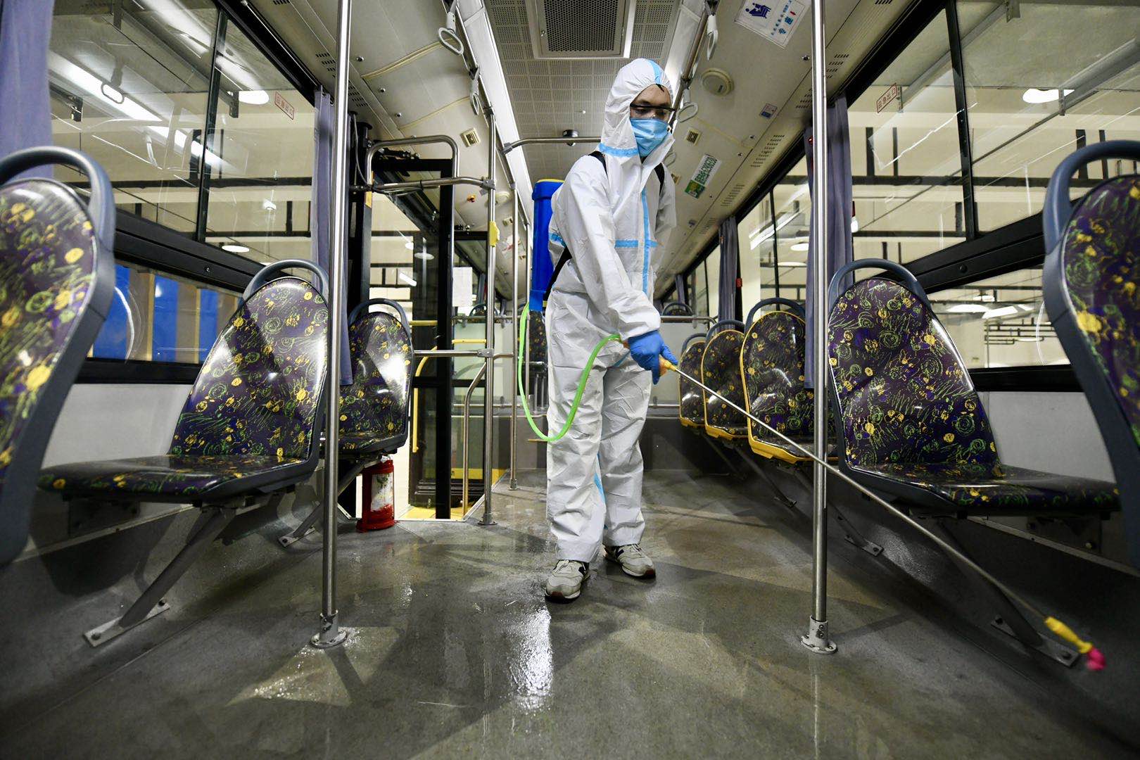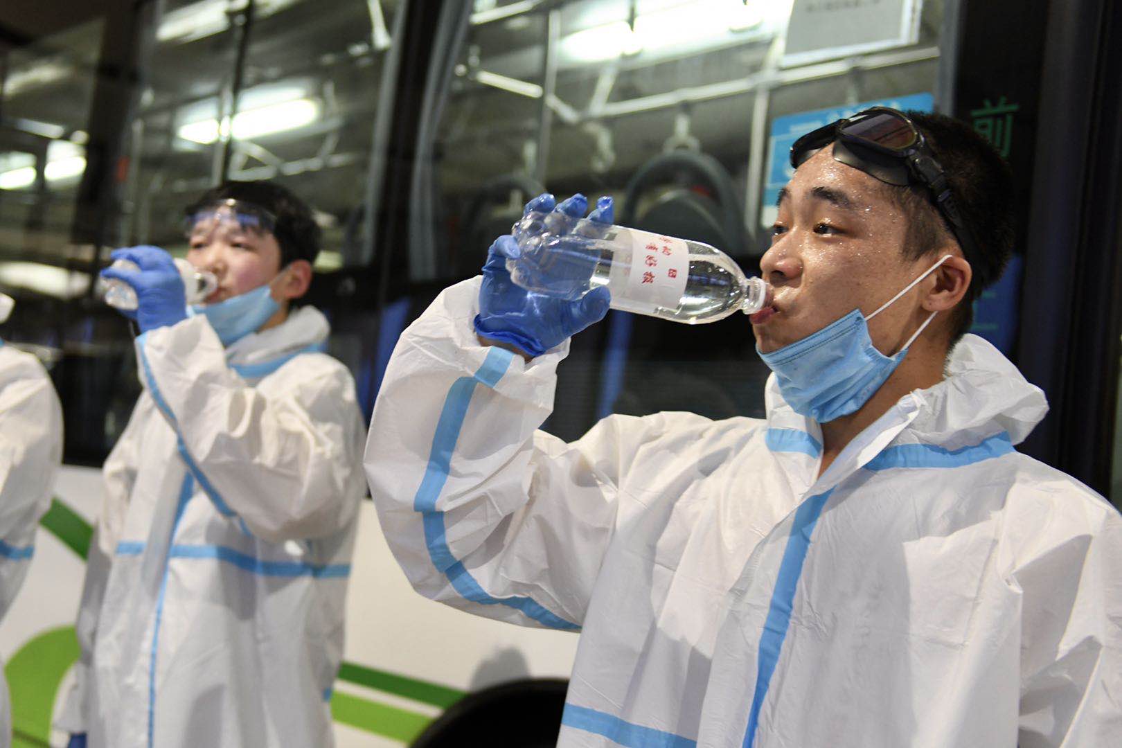 擦去污渍、耐心消毒、喷射消毒液,一辆车的保洁和消毒要重复几百个细节动作。穿着防护服,宛如置身行走的“桑拿房”,这些小伙子要一直“汗蒸”到凌晨3点。