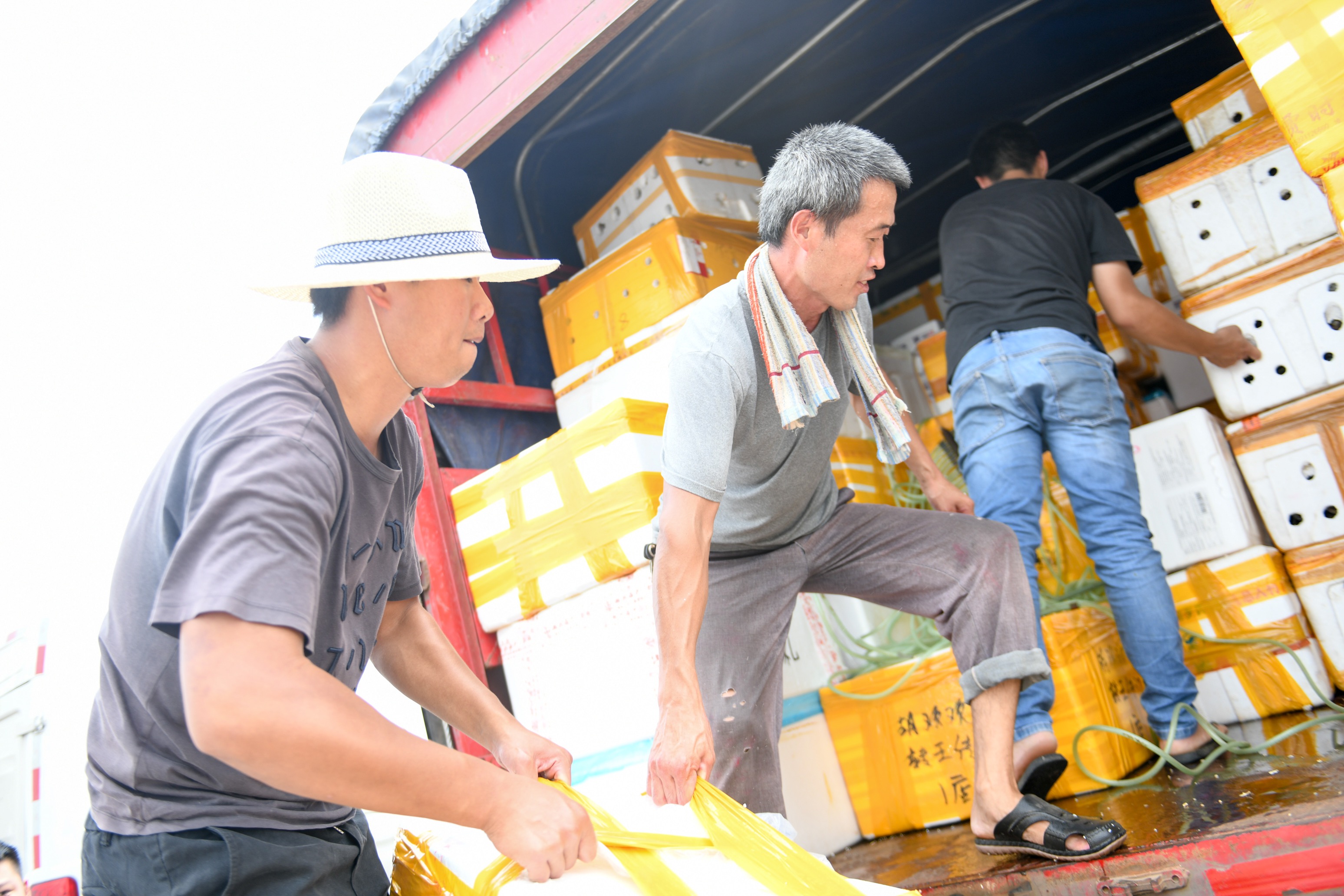 “一车是2吨左右,主要是珍珠龙胆石斑鱼,还有部分多宝鱼。通常,这些水产品从山东出发运抵沪上。卸完货,我们再返回山东,周而复始。”郑春刚告诉劳动报记者,他做这一行已有7年了,高温天的长途驾驶、到点装卸,是一场体力和耐力的考验。让他焦虑的不是体力劳动,而是怕行驶途中的突发故障,鱼儿需要水和氧气,路上的损耗都是经济损失。