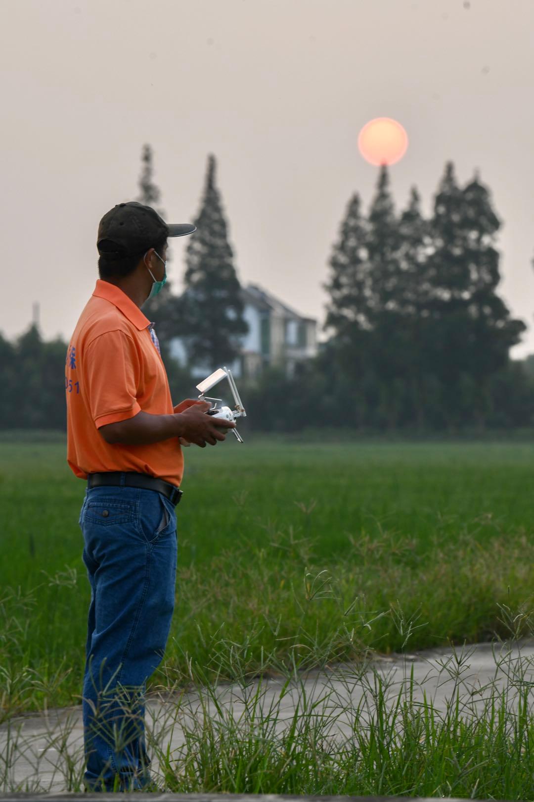 从5年前开始,周业燕成为了心意植保(上海)农业科技有限公司的一名植保“飞手”,常年在田间地头和农作物打交道。“天气越热,农户们找我们喷洒农药的频率就越高。” 他说,因为每年的七、八、九三个月份都是除虫害的黄金期。这几天出梅了,雨水暂止,自己就要开始抢时间了。