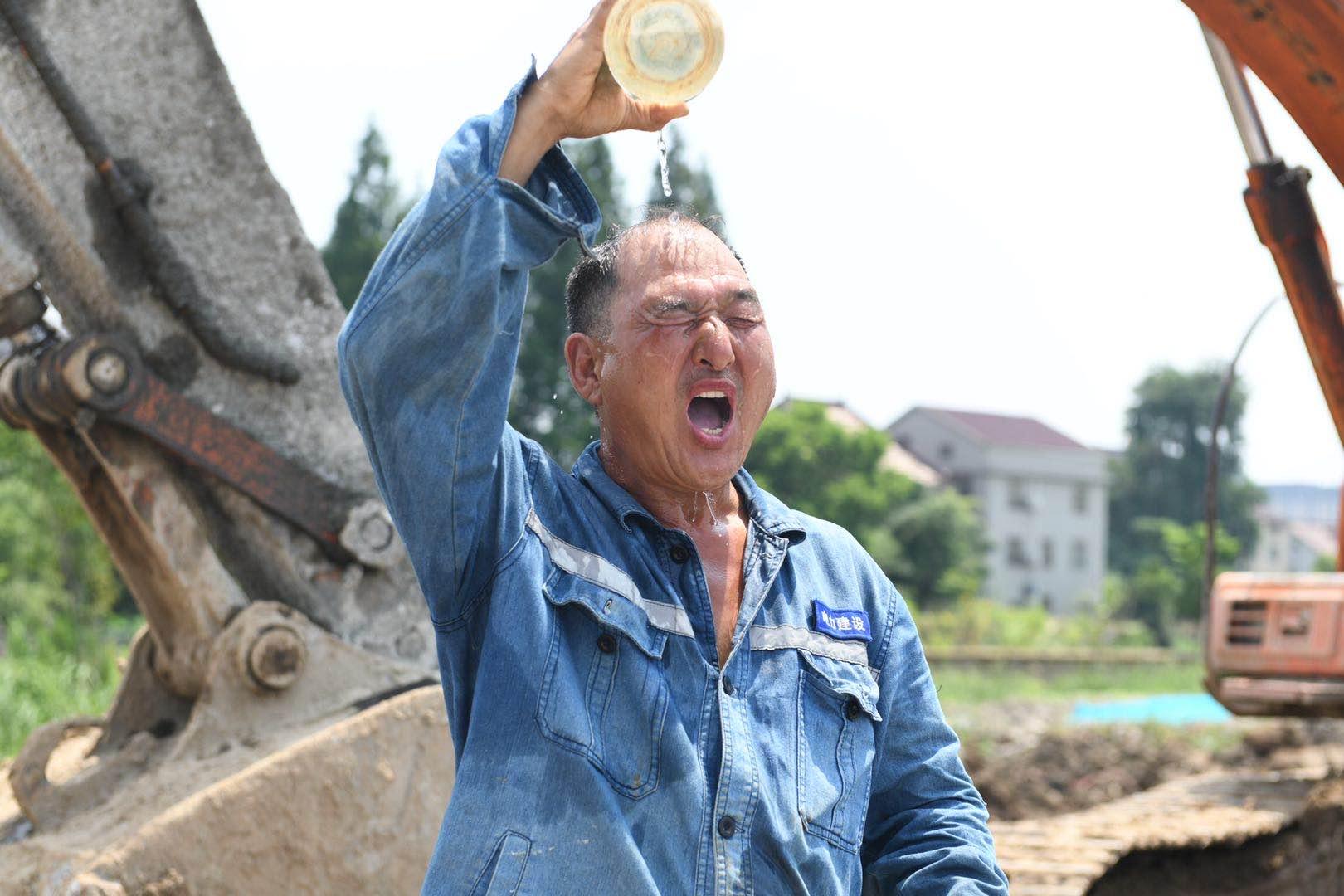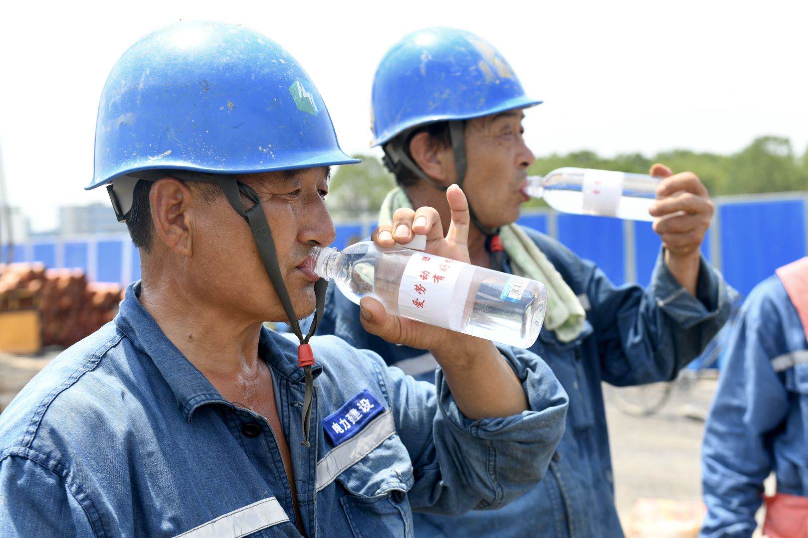 “这种天,起码要喝五斤水。”王顺军告诉记者,自己身上的工作服湿了又干,干了又湿,喝下去的水全都变为了汗珠又流淌了出来。