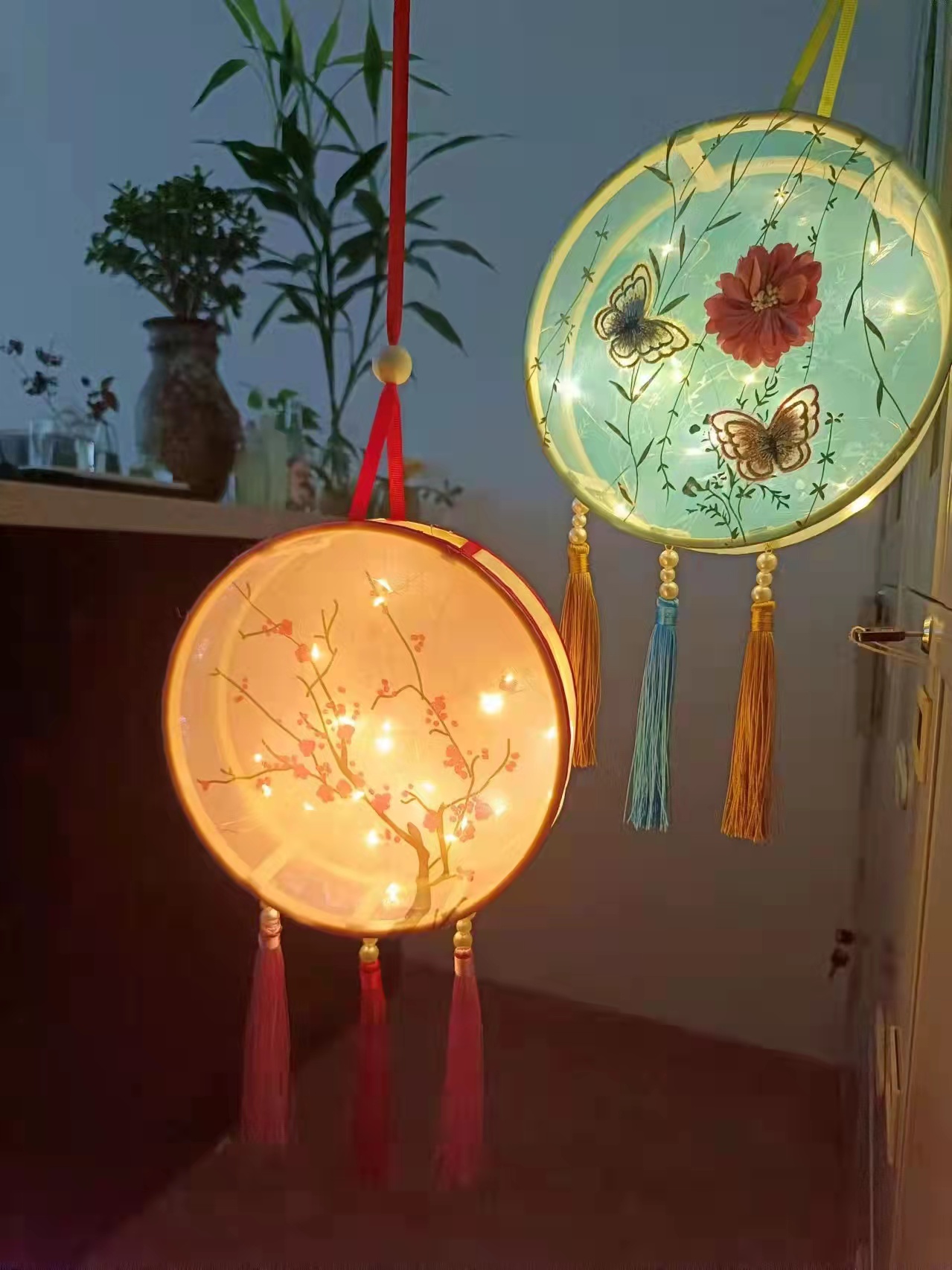 制成的宫灯,是中华传统文化符号之一。春蔷,夏荷,秋枫,冬梅,一团一圆里,讲述着四季流转的故事。封面,锁边,系带,镶穗,一粘一转间,蕴藏着巧手匠心的智慧。关着灯,是一幅幅古意盎然的典雅图画。亮起灯,便赋予玲珑多彩的鲜活神韵。