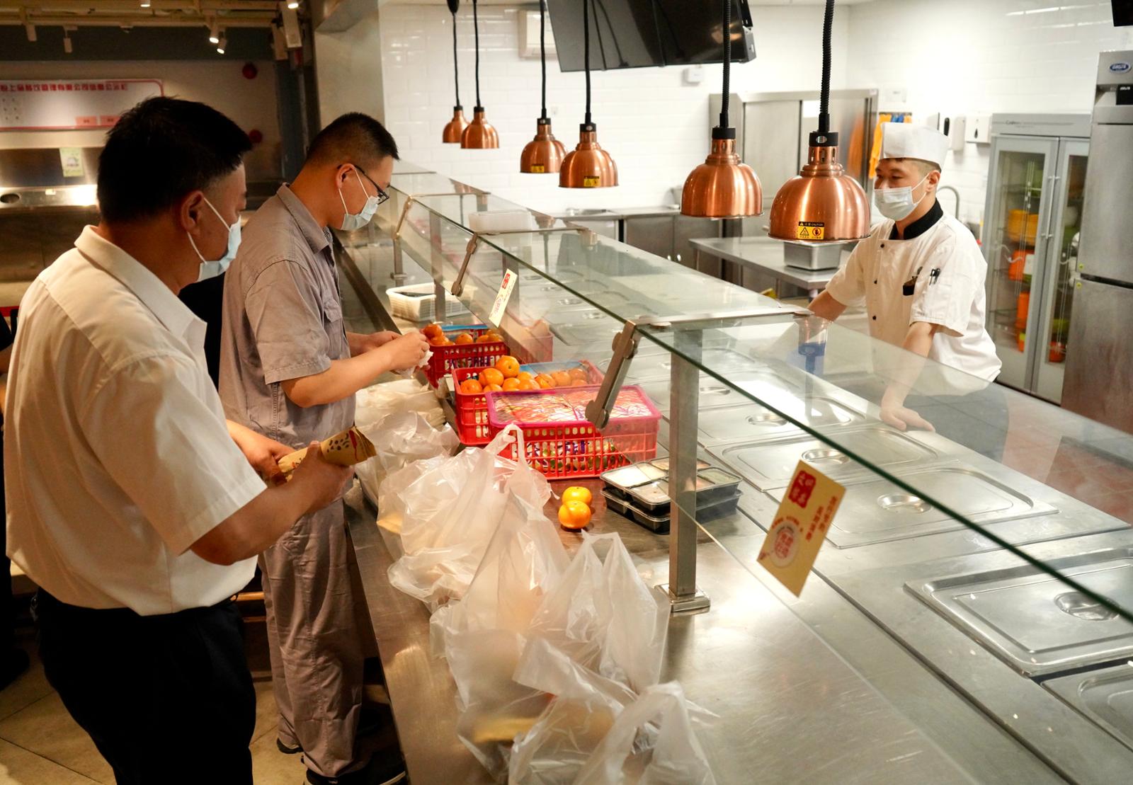 扫过场所码之后,记者进入餐厅,虽然过了午餐制作高峰,厨房内仍有人在处理刚送到的原材料。“眼下上海进入梅雨季节,又处于疫情防控阶段,防疫的同时我们也牢牢拧紧了食品安全这根弦。”除了严格监控原材料把关验收、食品加工制作及运输车辆等每一个环节,餐厅专门辟出“中央实验室”,由专业人员对食物进行抽检,确保每一份盒饭吃得放心舒心。