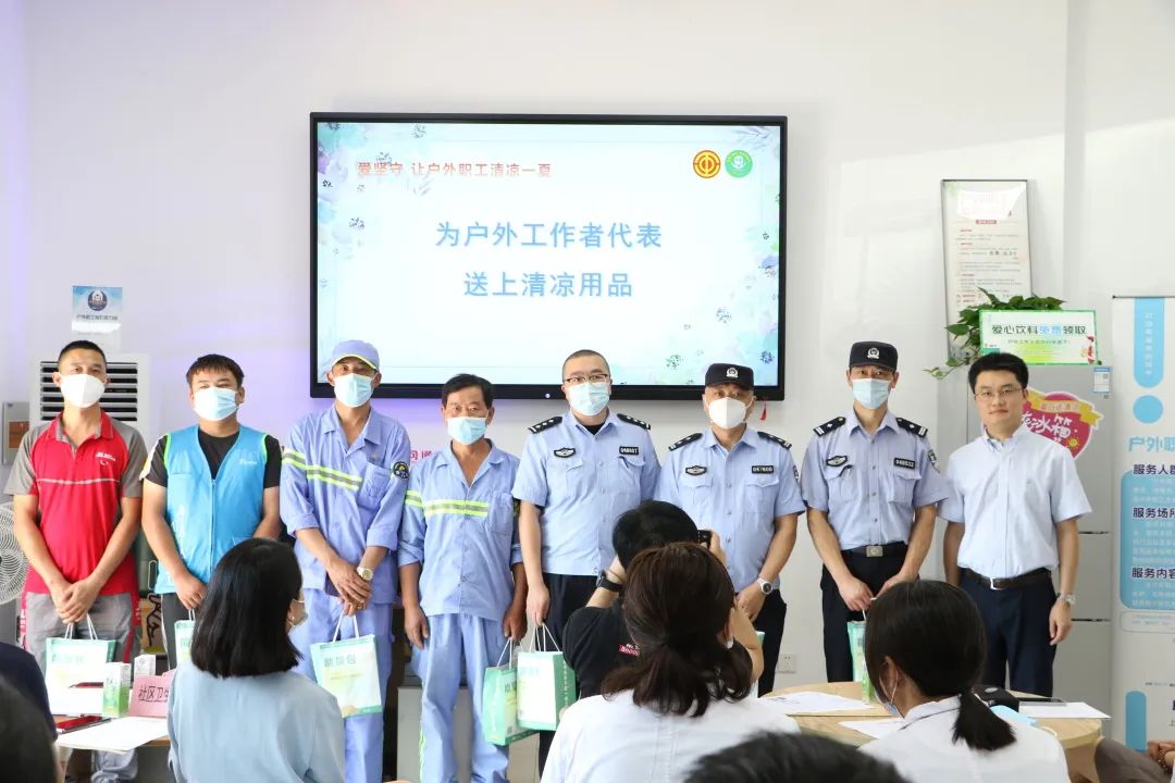 早在7月,华亭镇总工会便持续开展了夏送清凉活动,通过走访慰问企业一线职工,督促企业工会做好防暑降温工作,推动一线职工工作环境改善进入快车道。本次活动更依托户外职工爱心接力站,将夏送清凉的举措向更基层覆盖,为包括环卫工人、快递小哥、社区民警等在内的户外职工撑起一把把夏季“遮阳伞”。