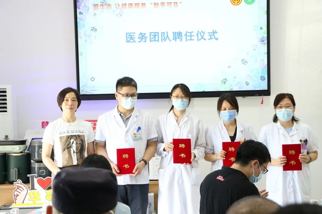 活动重头戏——唐行职工健康服务点也于当天仪式上正式启用。为保障广大职工健康权益,在社区卫生服务中心的支持下,华亭镇总工会建立了唐行职工健康服务点,该服务点也被评为了2022年上海市为民办实事项目“新建30个园区楼宇健康服务点”之一。活动上,镇领导为受聘的医务团队颁发聘书,该团队将定期为职工开展疾病预防、健康自检自评、健康教育、健康指导等服务。