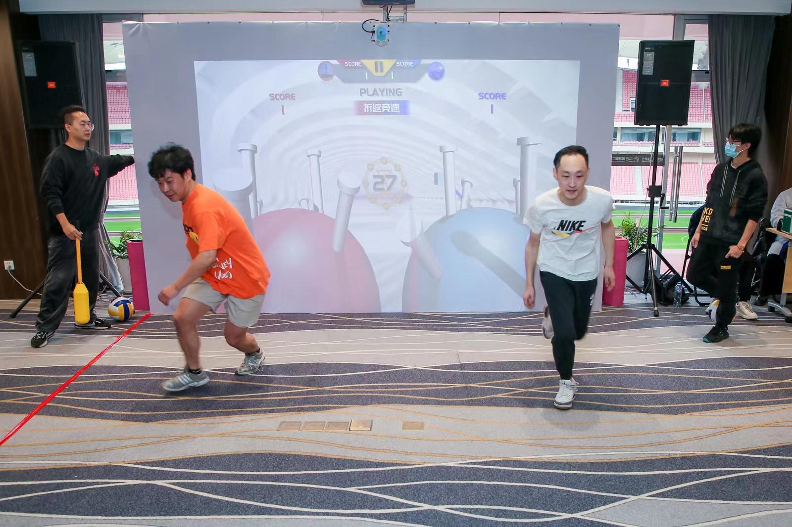 深蹲抛球、燃烧战绳、交替俯卧撑……记者在现场看到,依托AR现实交互科技,8项富有科技感的“智能体育”项目轮番上演,吸引了众多职工热情参与。“这项比拼太考验人的体力、反应力和意志力了,最难的还是要属‘波比燃脂’这一关,不但要做动作,还要准确击打到屏幕上的目标点才能得分。” 刚结束比拼的长远文化集团职工吴季鸣接受记者采访时,满脸通红,呼吸急促,豆大汗珠不停从额头滴落。他喘了口气接着说道,“和传统健身相比,AR健身这个‘黑科技’互动感特别强,娱乐健身两不误,让我暂时从紧张的工作中解脱出来,身心得到了充分的放松。”