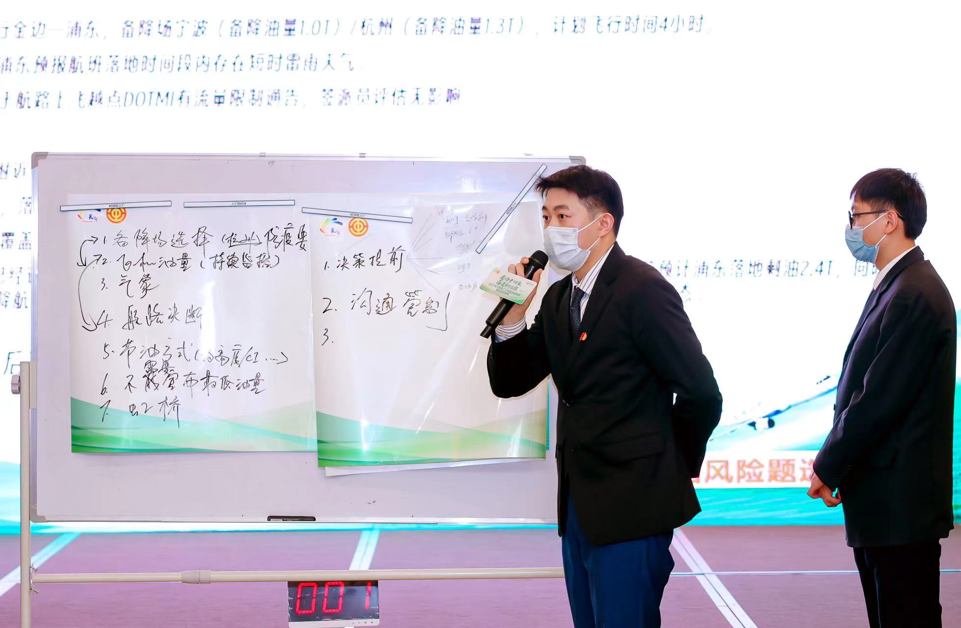 风险题可谓是整场比赛最扣人心弦的环节。包括航班备降、医疗支援、飞行故障、疫情防控等,选手们要根据不同场景,在短时间内完成风险评估,给出解决方案。比赛中,各团队沉着应对,体现了签派人员认真细致的工作态度和极高的业务水平,也充分展示了签派员作为“不上天的机长”在保障民航安全运行中发挥的关键作用。队员们成熟自信的表现赢得在场评委和观众的阵阵掌声。