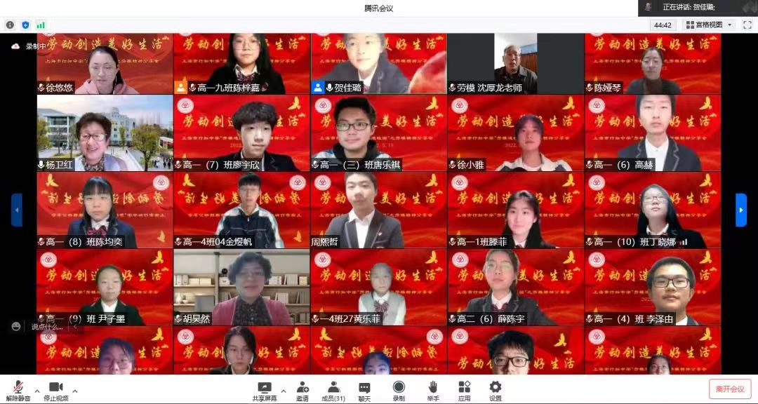 “五一”劳动节当天,劳模张燕、王健康、姜寅敏、杨丽芬四位劳模“走进”上海市兴陇中学的“劳模云课堂”,与全体八年级师生、家长共话青少年的社会责任与家庭担当。在课堂上,学生现场发出连线邀请,对劳模进行“云采访”。王健康讲述了自己在疫情期间担任楼组长,保障居民生活物资供应的志愿者经历,同时鼓励大家要做疫情防控的遵守者,勇敢承担起社会责任。学校还启动了线上劳动周主题教育活动,开展“我是厨房小能手”实践任务。隔着屏幕观看学生们的厨艺达人秀视频,劳模们频频点头,直夸学生“来赛”(上海话“强”的意思)。