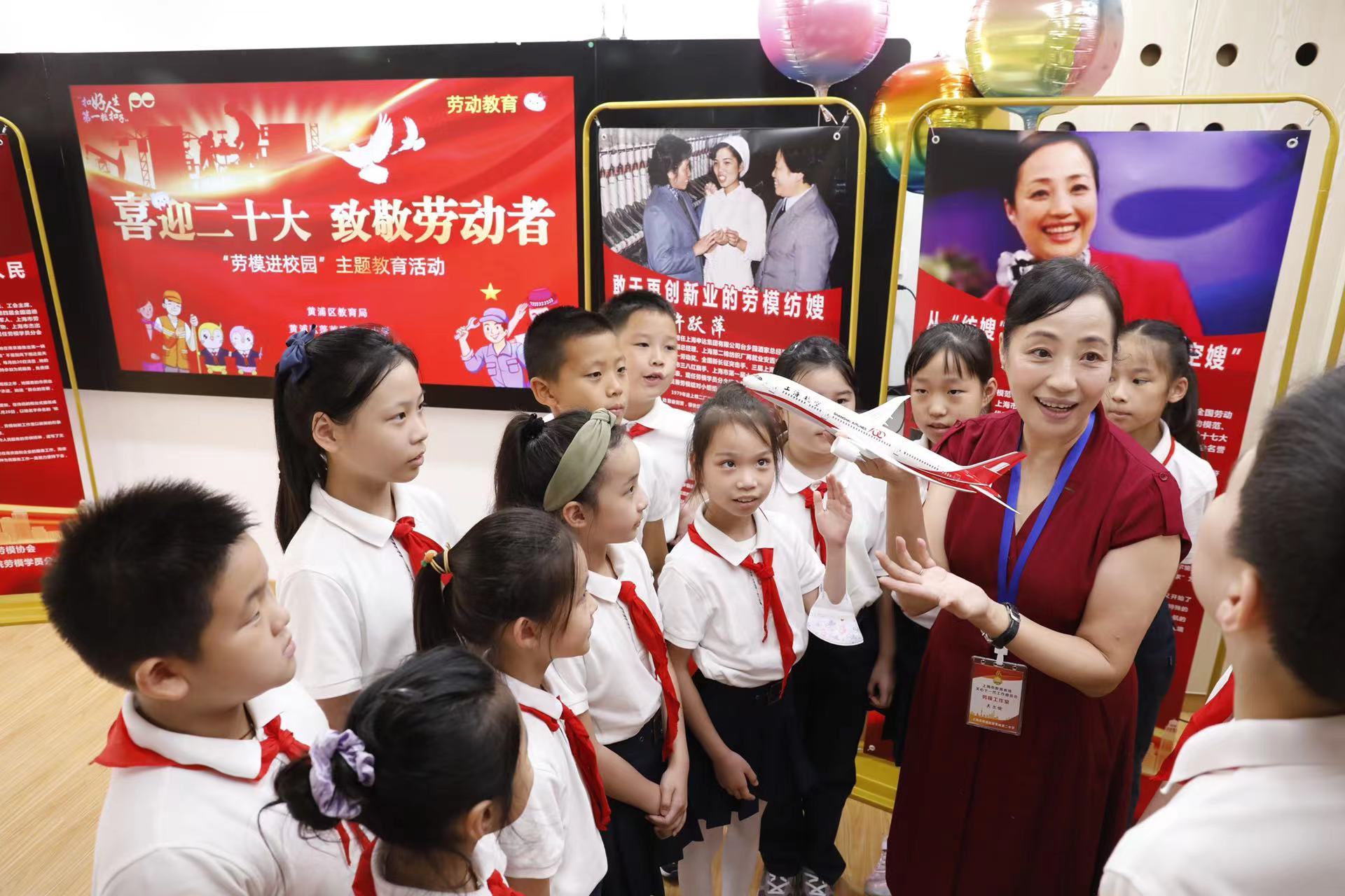 吴蓉瑾:今年是我们开展劳模进校园活动的第十七年。对劳模的尊重,永远是放在首位的,这也能让学生更好地走近和认识劳模。他们长什么样,有哪些动人故事,对于即将走进校园的每一位劳模,老师和学生都要做足“功课”,不能让劳模进校园变成一场单方面的讲座。所以我们策划了“小小接待员”的活动,让孩子们“竞争上岗”,自己查资料,自己写讲稿,看谁能把劳模故事讲得更生动有趣。在每周一堂特别开设的“情感教育课”上,我们还会请孩子走上讲台,向台下的劳模和师生,讲述他们眼中的劳模故事。我们还会对学生进行礼仪培训,教他们如何接待劳模,搀着他们参观校园,给他们戴上大红花。可以说,走在校园的任何一个地方,只要学生遇到了劳模,都会第一时间认出他们,并亲切地叫上一声“劳模爷爷”“劳模奶奶”。