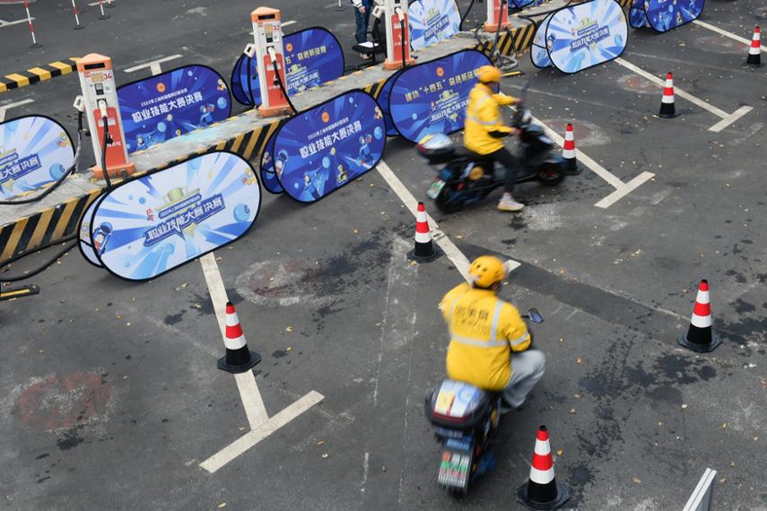 (本市首届网约配送员职业技能大赛决赛举行。)