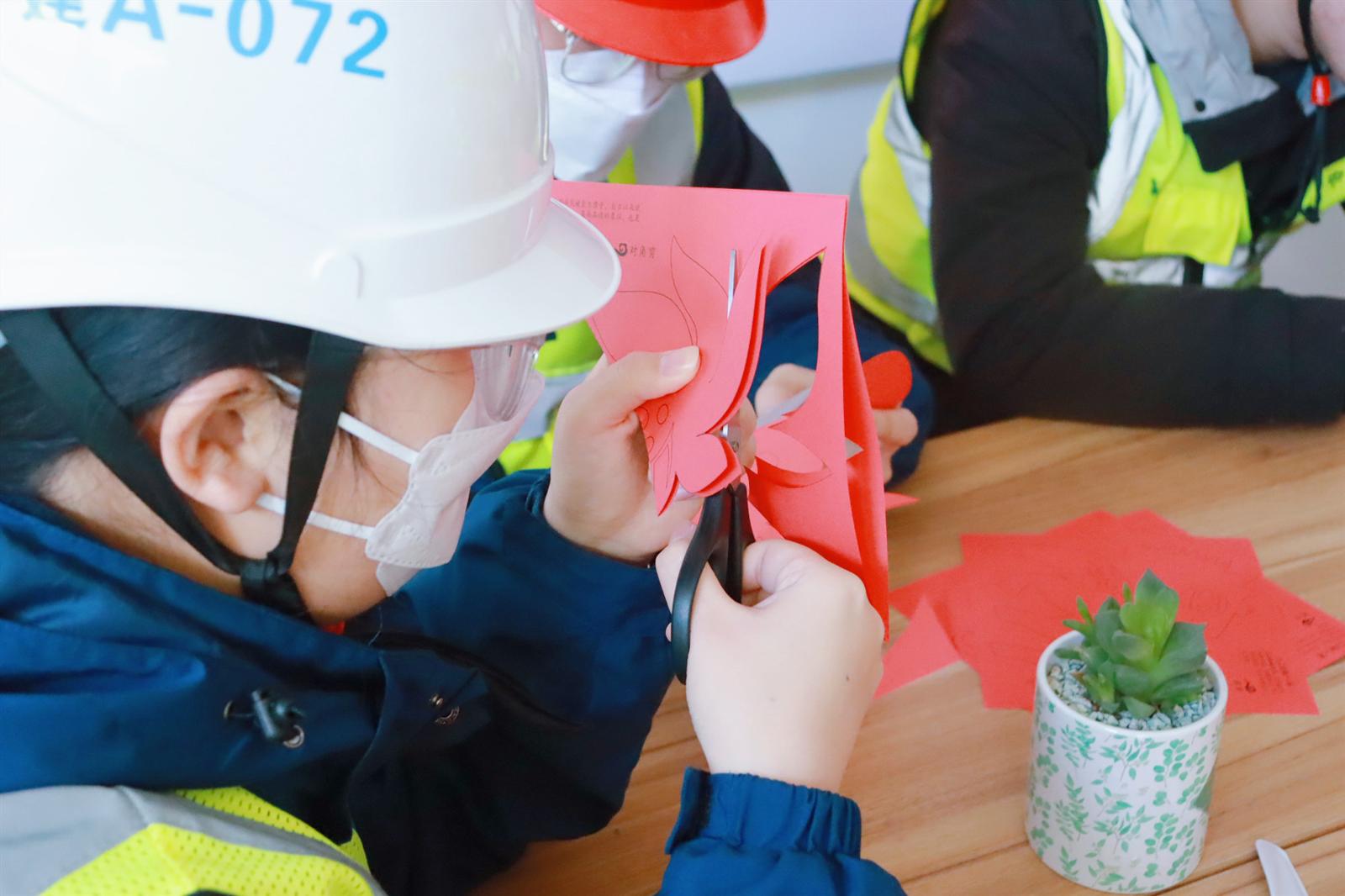 案头一把剪刀、一叠红纸,寓意着职工的美好心愿,窗格子贴满各色灵动窗花,象征着美好新春的开始……昨天,中建二局华东公司书院社区项目工地一派喜庆热闹的氛围,这里正开展“剪窗花,赠春联,建证幸福年”活动,仍然坚守在岗位上的城市建设者们,收到了项目工会对他们最真挚的祝福。