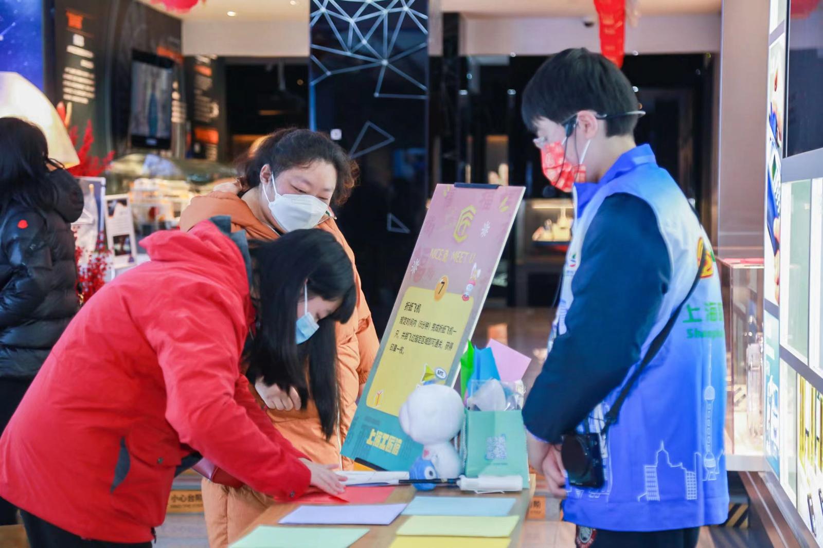 时节如流,品物皆春,癸卯新岁,位于上海工人文化宫一楼的上海工匠馆在今年大年初一(22日)至大年初三(24日),策划了一场与劳模牵手互动,创意十足的“寻宝”之旅。三天的活动中,全国劳模、小柜台大服务“壹食壹品”专柜柜长郁非,全国劳模、上海工匠、C919大飞机制造者胡双钱,全国劳模、全国最美志愿者、传统中医文化传播者陈黎静等多位时代楷模、大国工匠齐聚上海工匠馆,人们不仅能体验到趣味性十足的猜谜答题、手工制作、游戏闯关、年节民俗体验等七大线上线下游戏环节,还能通过“寻宝”集章兑换工匠馆新春大礼包文创纪念品,与劳模工匠零距离接触,互道新年祝福,一起踏上Nice“兔”meet U 新春寻宝之旅。