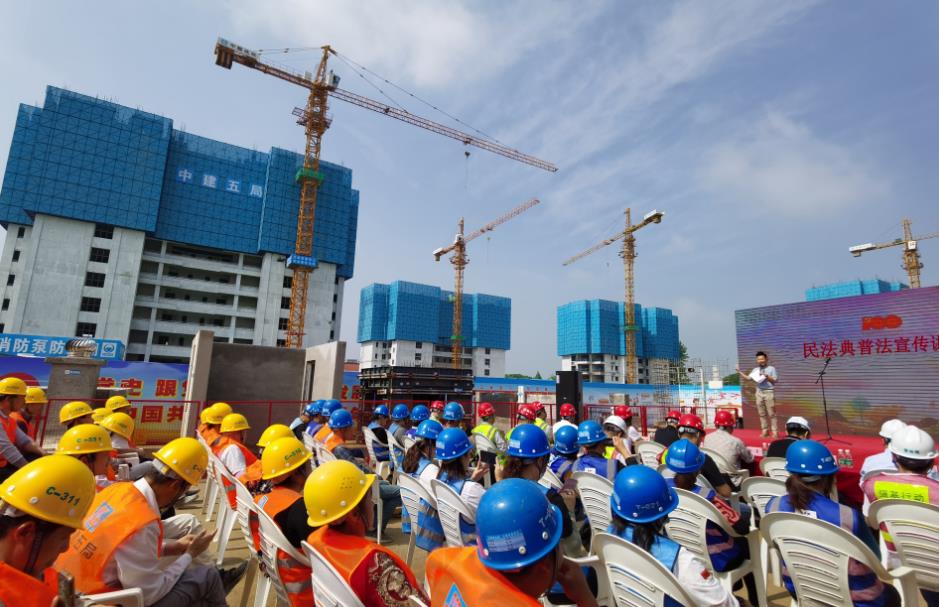 图片说明:中建五局华东公司组织开展民法典普法宣传进工地活动。■受访对象供图