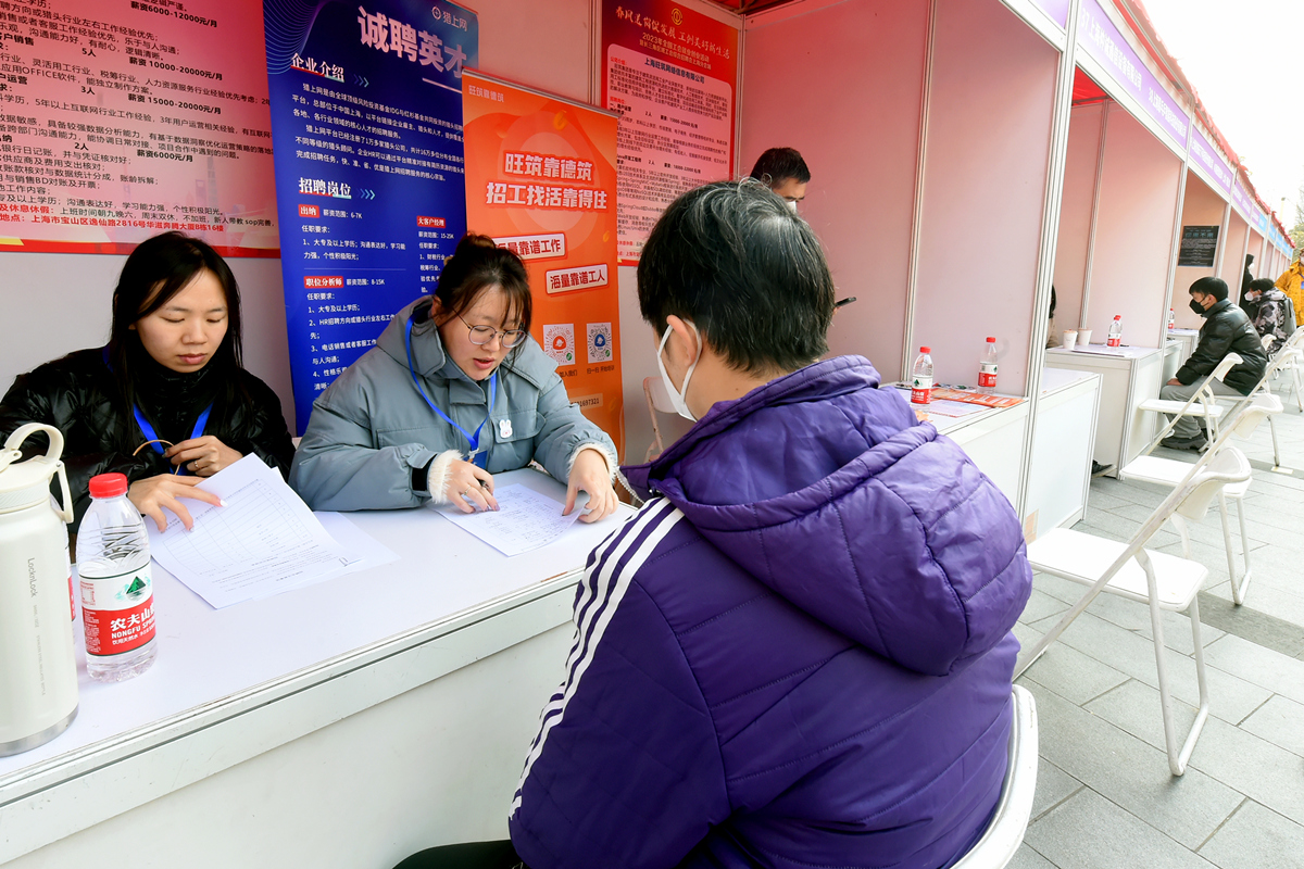2月25日,由上海市总工会主办的2023年全国工会就业创业活动暨长三角区域工会综合招聘会上海分会场在宝山宝龙广场举行。早春的上海天气依旧寒冷,但新年新出发,求职者撸起袖子加油干的热情已经高涨。