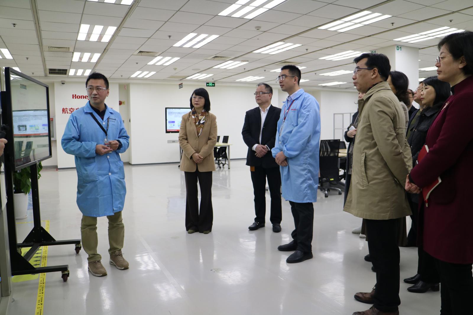 委员们走进霍尼韦尔的一线生产车间和研发部门,来自航空电子工厂的厂长林方翔和安全与生产力解决方案集团的科技创新体验中心的金朝霞博士介绍了公司在鼓励职工创新、改善工作流程等方面的举措和成效,规范化的流程和丰富的产品给委员们留下了深刻印象。在航空电子测试设备创新工作室,在了解到工作室研发的航电系统测试台在行业中属于首创,黄红为工作室领衔人刘兆庆的创新精神点赞。她详细询问了工作室的运转模式、对市总工会有何要求等情况,并鼓励他们再接再厉,研发出更多创新产品。