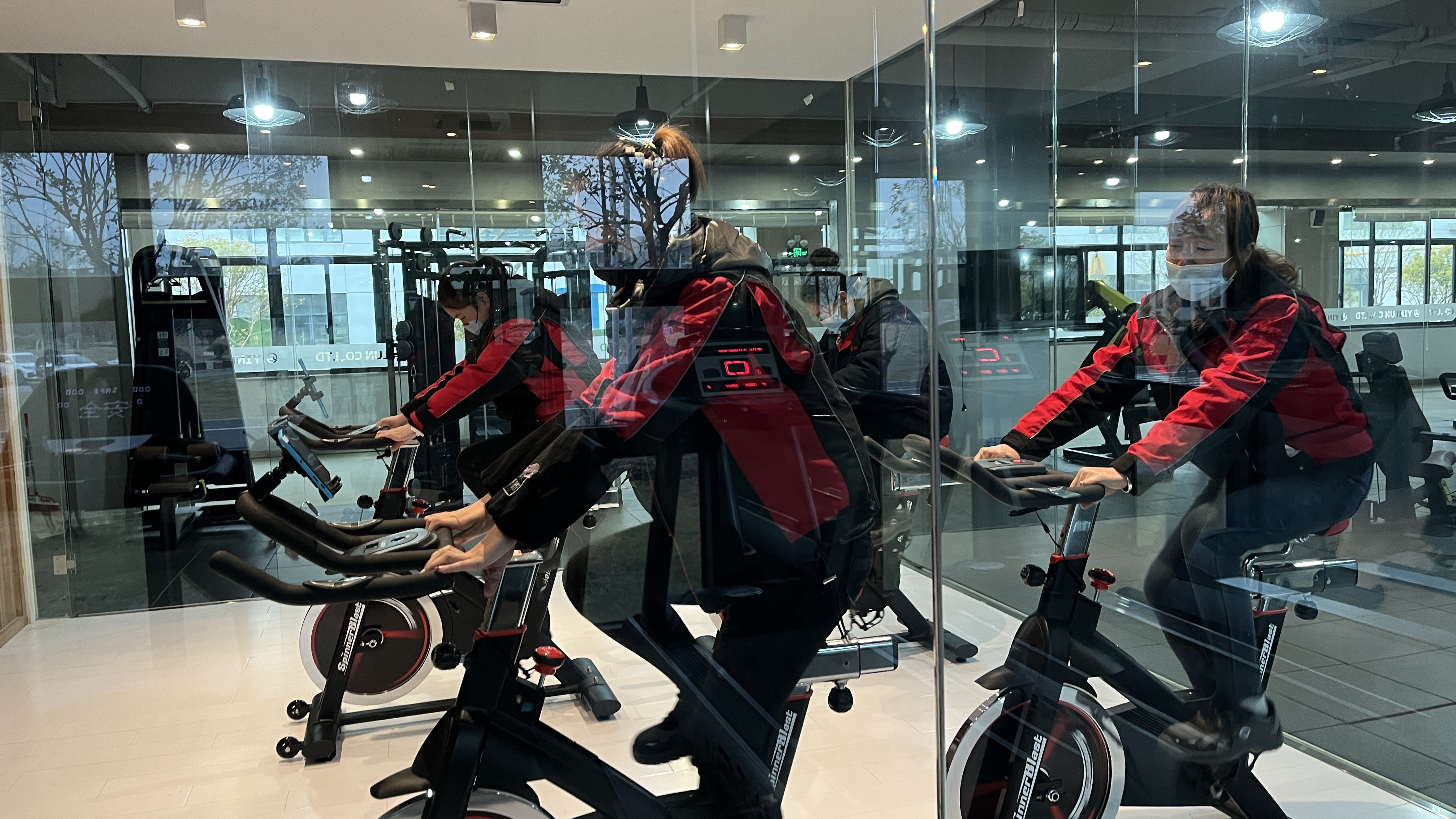 图为公司职工在健身房内锻炼