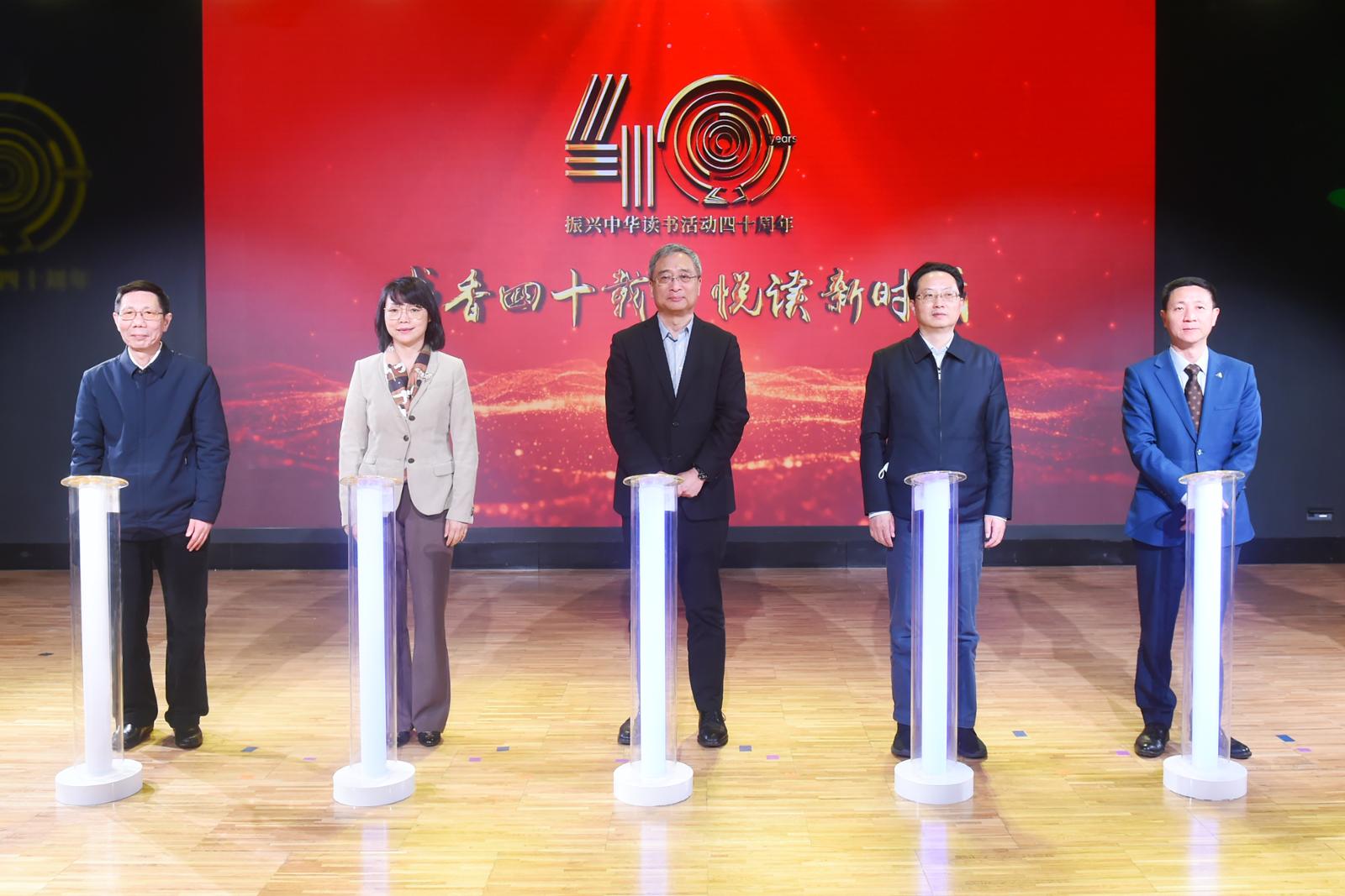 与会领导共同点亮上海市振兴中华读书活动40周年传承标识