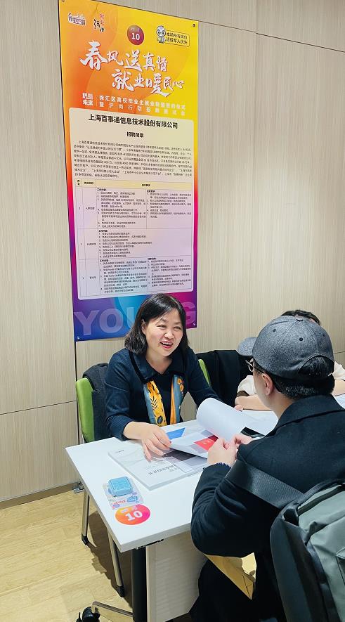 上海百事通信息技术股份有限公司多年来聚焦科技赋能法律的创新实践,在这场招聘会上,企业特意将管培生的岗位要求中注明了需要法学专业背景,张宁解释说:“法学专业热招生冷就业,一直在学科就业排名里不高,我们是一家从事法律加科技的公司,公司有需求,我们就将管培生招聘的资源向法学专业倾斜,希望广纳贤才。”
