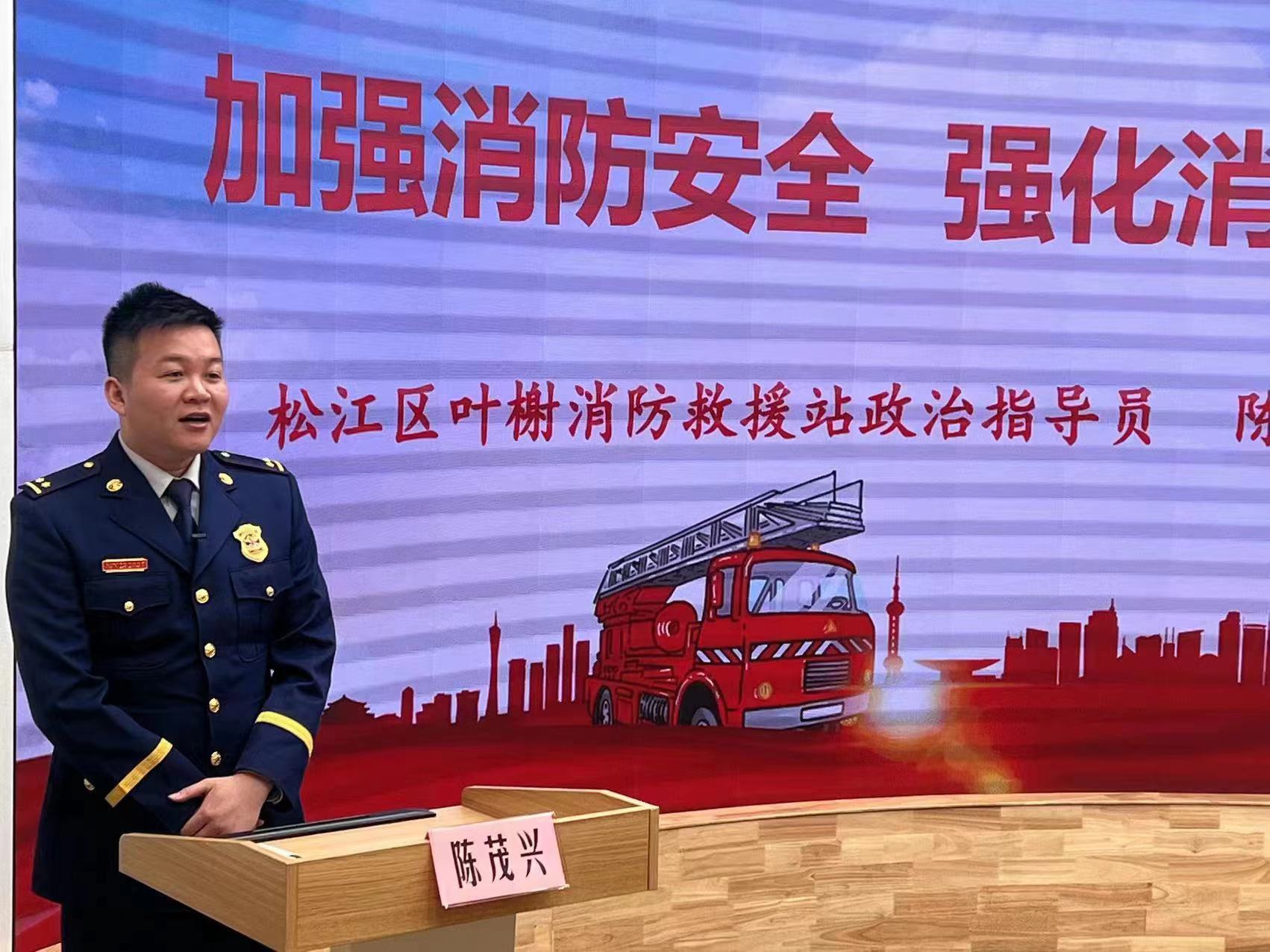 松江区叶榭消防救援站党支部书记、政治指导员陈茂兴带来《加强消防安全 加强消防意识》