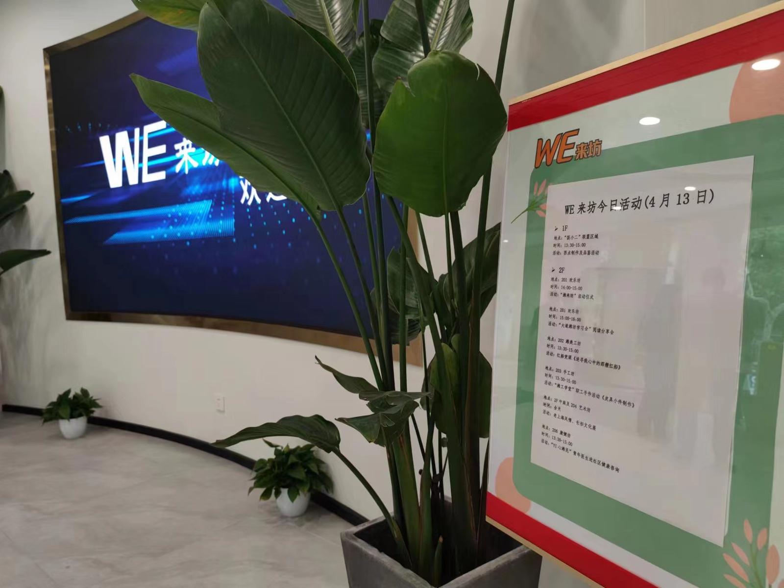 在“WE来坊”入口处,记者看到一张公布了当日活动的“排片表”,包含红船党课、“潍工学堂”职工手作活动、青年医生进社区健康咨询等活动。据悉,未来此处将定期开展活动,职工可通过微信公众号报名参加。通过“WE来坊”公共空间,潍坊新村街道通过把服务阵地建在老百姓的家门口,助力构筑起宜居、宜业、宜游、宜学、宜养的“15分钟社区生活圈”。