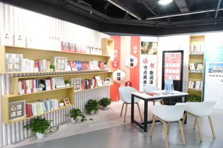 当观众漫步至第二篇章时,不仅有纸质读物,种类丰富的读书角,也有“劳模来了”电子显示屏,“数字借阅一体机”,仿佛让参观者回到了自己单位熟悉的学习场景里。