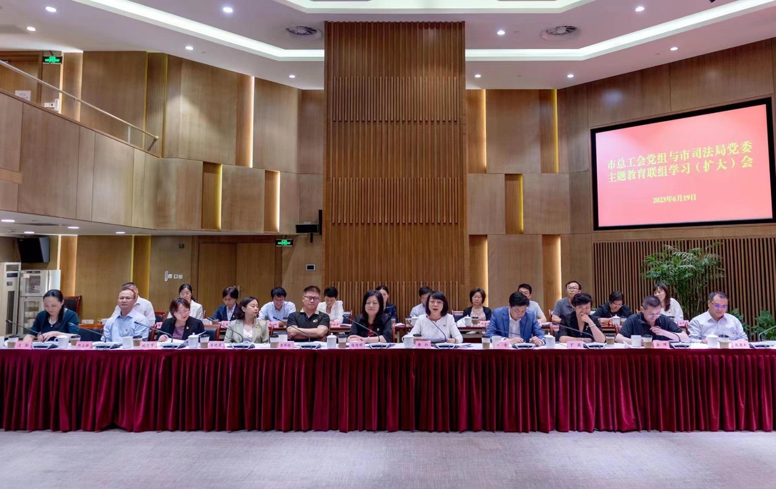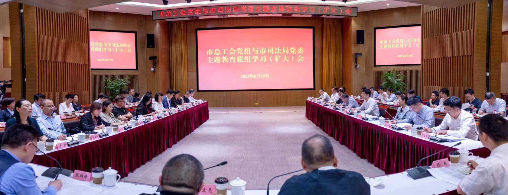 市委第七、第九巡回指导组、市总工会党组成员及相关部室主要负责人,市司法局党委成员及相关处室主要负责人等参加学习。