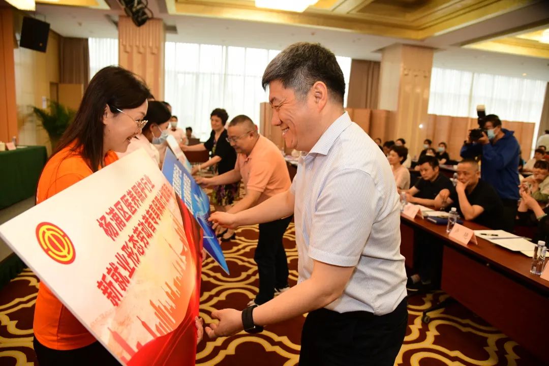 会上,杨浦区总工会党组书记、常务副主席司徒行喆,上海市总工会劳动关系工作部副部长曹宏亮,杨浦区总工会党组成员、副主席江欲红共同为区医养照护行业优秀职工代表赠送健康体检、互助保障、疗休养等组合关心关爱大礼包。上海市总工会副主席赵德关、杨浦区人大常委会副主任、总工会主席董海明共同为“杨浦区总工会新就业形态领域劳动纠纷调解中心”揭牌。会上,市总、区总相关领导共同启动“建功‘十四五’ 奋进新征程”——2023年上海市杨浦区医养照护从业人员劳动和技能竞赛活动。