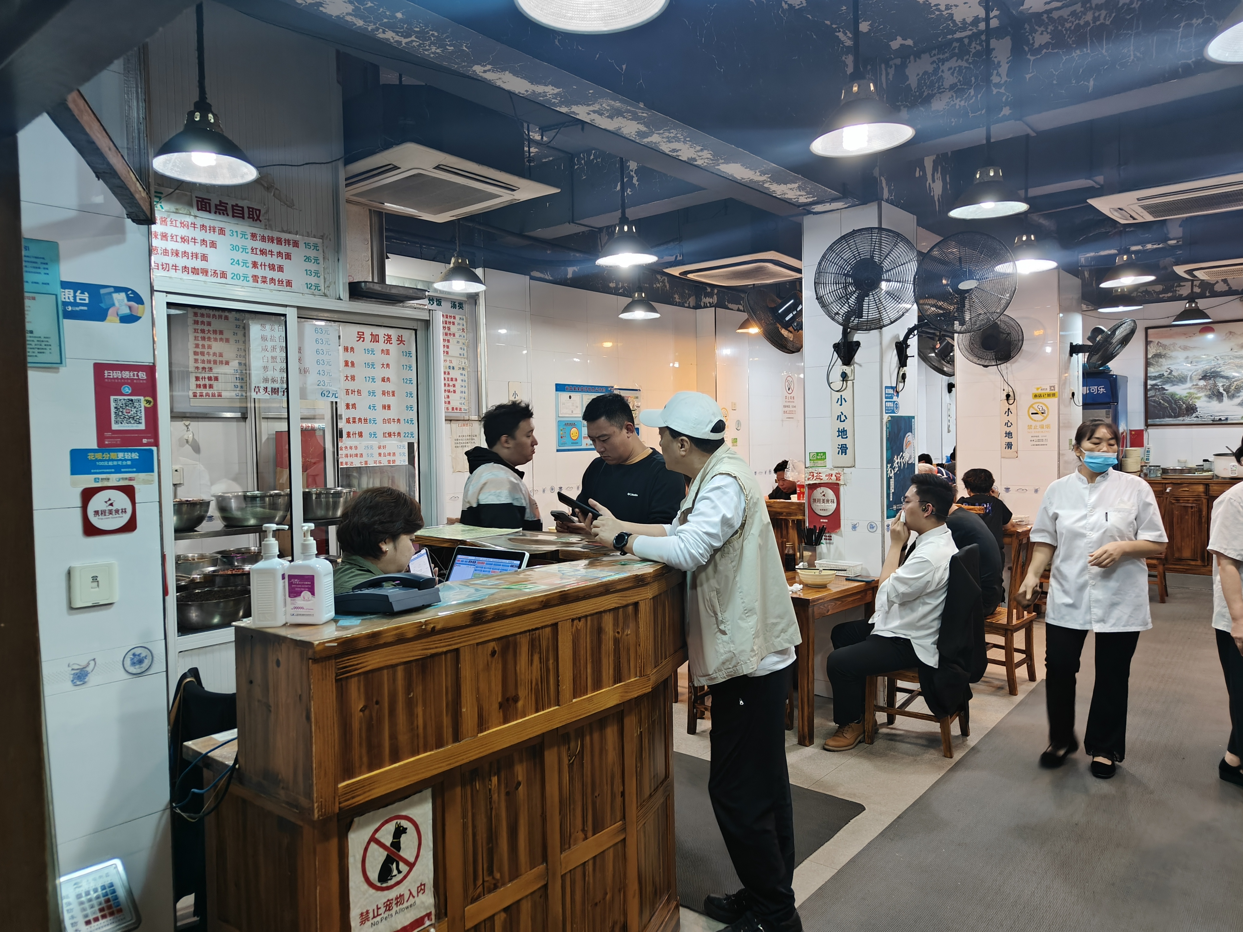 晚上8点50分,大众出租车驾驶员石明完成上一笔长寿路的订单,来到安远路常德路口的春和面馆。这一口热乎的热汤面,是他自中午12点吃饭后吃的第一口饭。吃“晚”饭,也是许多出租车司机的常态。