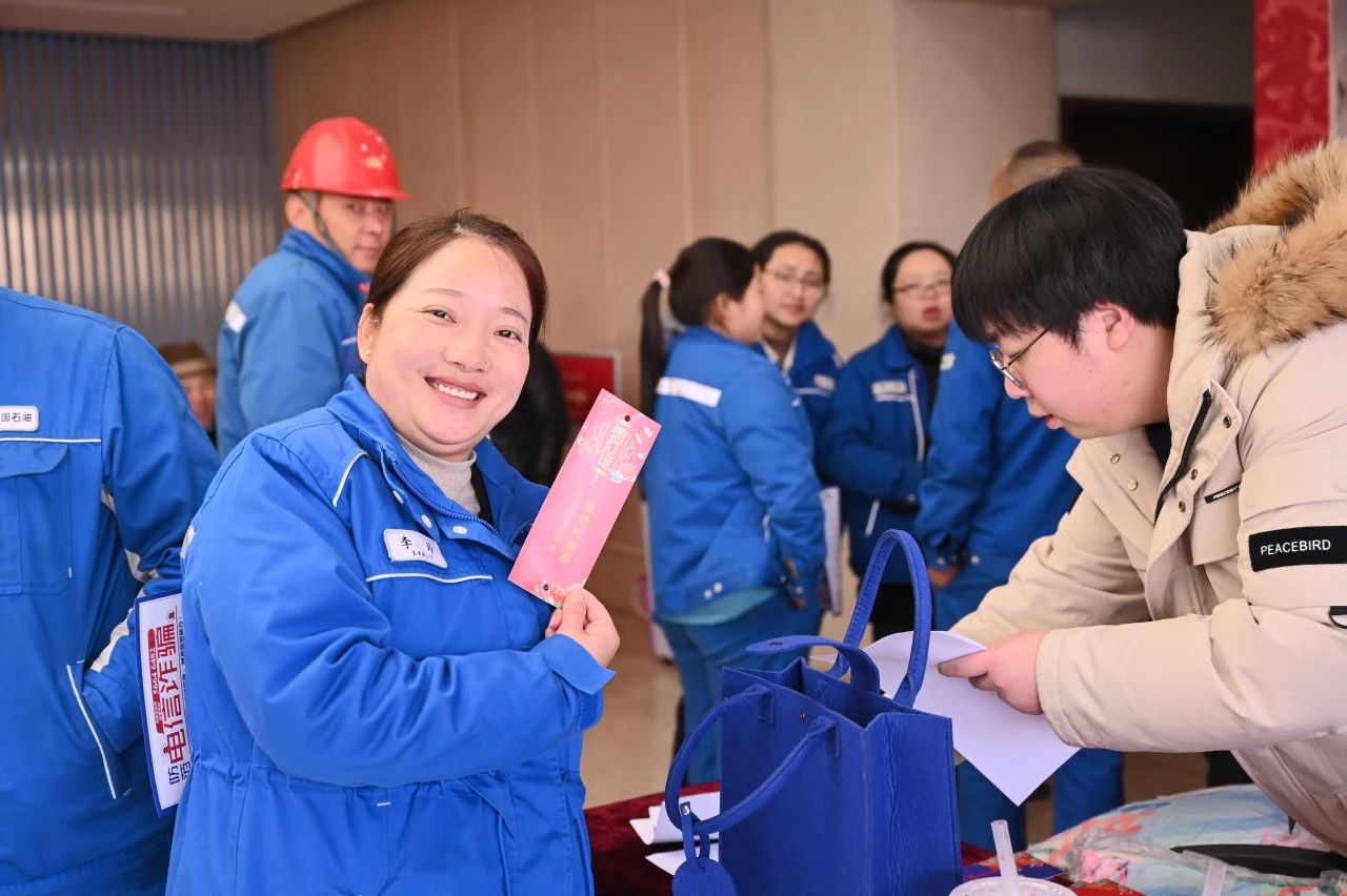 当天中午,宝世威公司的一楼走廊装点一新,喜气洋洋。作为年会的暖场节目,春联书写、灯谜解谜、非遗展示,各式活动让职工们在忙碌之余感受到了浓浓的年味和家的温馨。书法家们现场挥毫泼墨,为职工送上充满祝福的春联,每一幅都蕴含着喜庆与美好。灯谜区格外热闹,既增添了乐趣,又激发了参与者的挑战热情。此外,健康咨询、反诈骗宣传和法律咨询等志愿服务也受到了职工的一致好评。