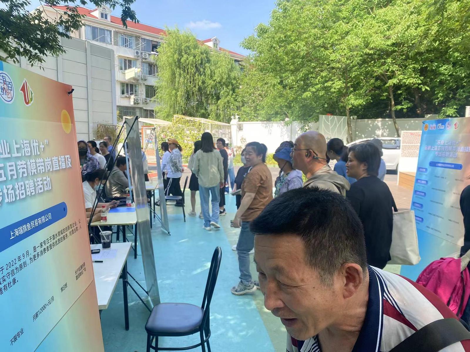 今天下午,“乐业上海优+”会聘上海五月劳模带岗线专场招聘活动(长宁工会专场)在长宁区虹古路427弄开展。招聘会现场各个摊位前气氛热烈,企业与应聘者面对面交流,并就应聘者关心的职业规划、薪酬福利等问题进行了详细解答。