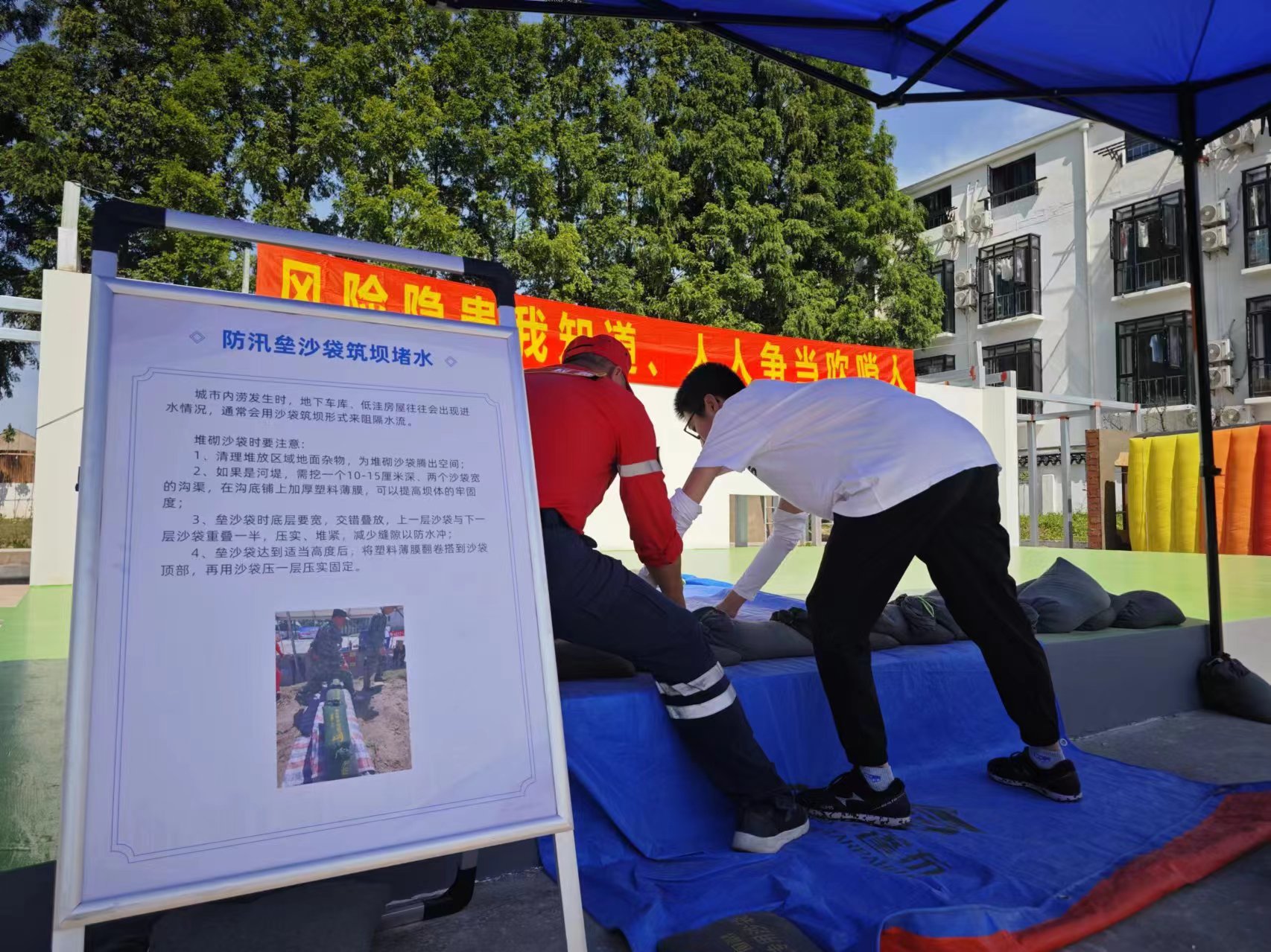 防汛垒沙袋筑坝堵水、火灾模拟烟道逃生、灭火实训、中暑急救、安全用电……走进活动主办场地万一应急救援服务中心,安全实训场景和安全用品的现场展示让职工在情景化的场景感受了一场沉浸式的安全实训体验。随着这场活动的举办,也开启了2024年闵行区“安康杯”竞赛活动。