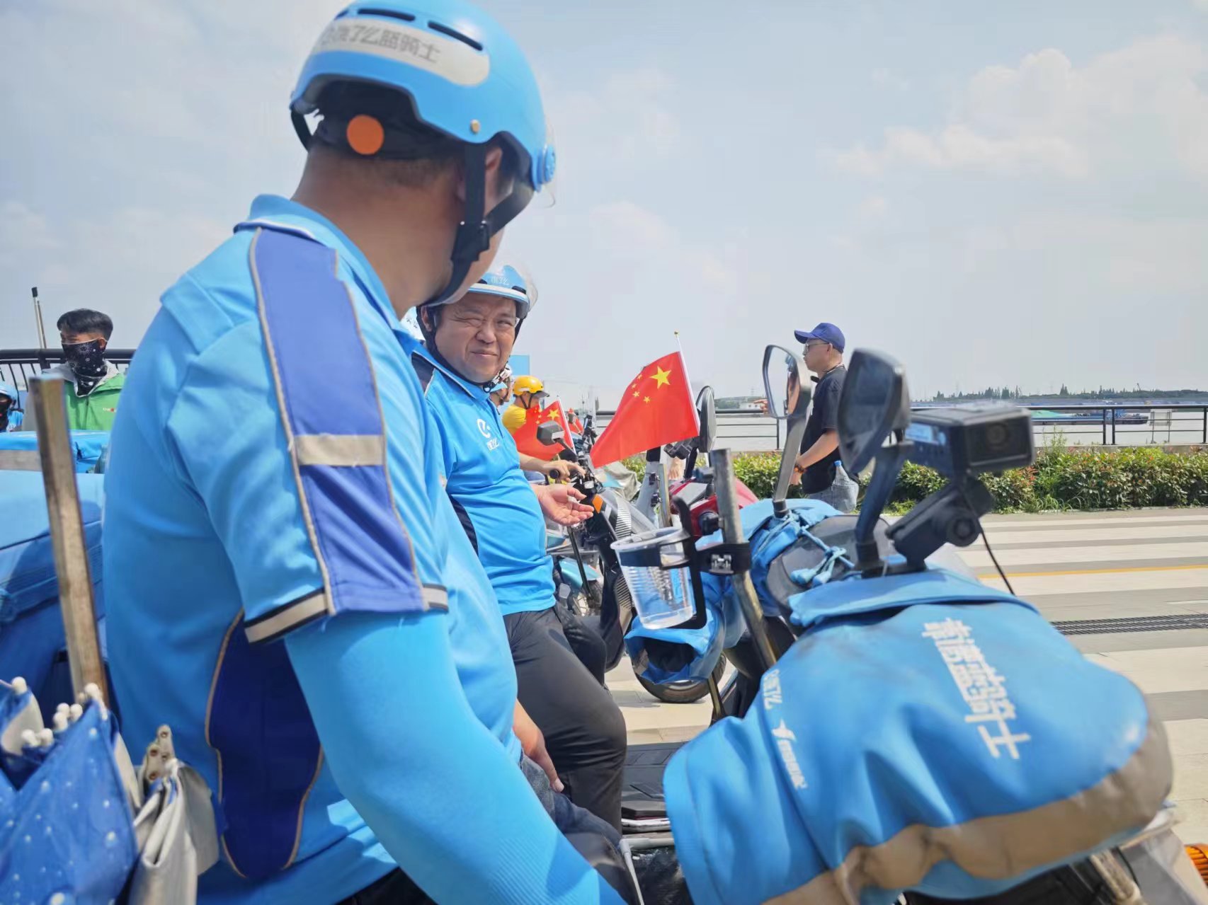 来自饿了么老闵行站的女骑手张平是本次参赛的6名女选手之一,今年,她所在站点的5名女骑手共同组了一支“女骑手队”参赛。作为一名从业5年的女骑手,她认为女骑手也有自己的优势。“也许我们在爬楼这些方面不行,但是我觉得我骑车还是比较稳的。”这次比赛期间,选手们的车架上全程放置了一杯水,在比拼速度的同时,也要注重杯中水不洒落。张平告诉记者,虽然自己完赛的速度不快,但自己杯子里的水几乎没洒,这让她颇为满意。