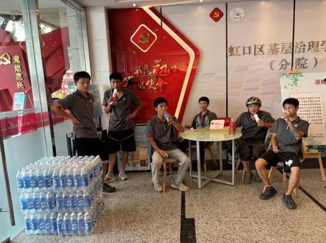 除了基本的休息、饮水、充电服务之外,凉城新村街道总工会还在一些主要站点为户外工作者免费提供盐汽水、应急药箱药品等服务,同时,在党群服务中心的“凉城暖驿”站点,还免费向户外职工提供冷饮,让他们感受夏日里的“甜意”,帮助他们应对烈日“烤”验。