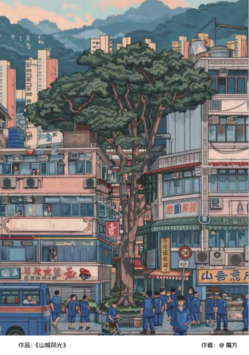 当AI的算法与创意的火花相遇,作品不仅仅是像素的堆砌,呈现了新的风格。主办方表示,AI通过深度学习理解城市文化、建筑风格、自然环境乃至人类情感后,所呈现出的作品打破了传统摄影与绘画的界限,以超现实的视角重新定义了“城市会客厅”这一概念。