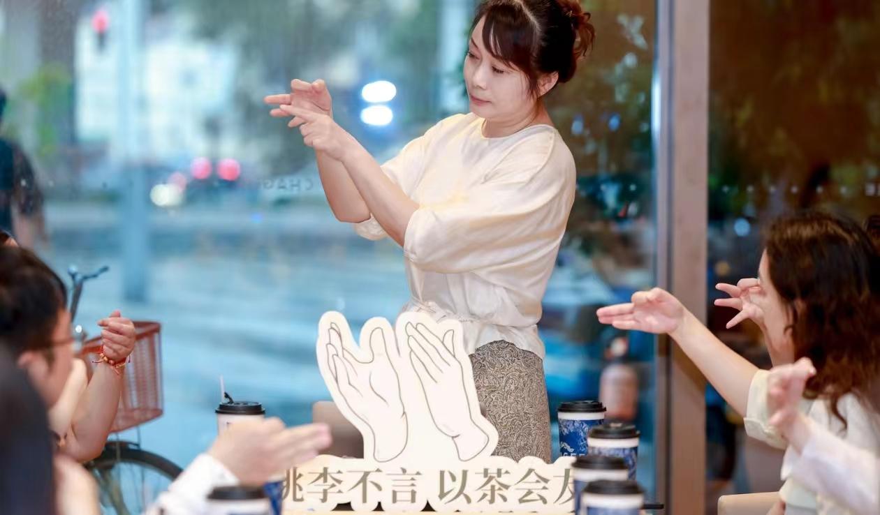 相比其他城市无声门店,上海本次“无声门店”进行了全面升级,店内设置了清晰易懂的指示牌和标识,方便视力障碍人士快速找到所需服务。同时,门店还配备了轮椅通道等无障碍设施,确保行动障碍人士也能顺畅地享受茶饮服务。开业当日,霸王茶姬还邀请了上海市第一聋哑学校校长郭奕敏到店,开展了手语课堂活动,给大家普及手语知识。