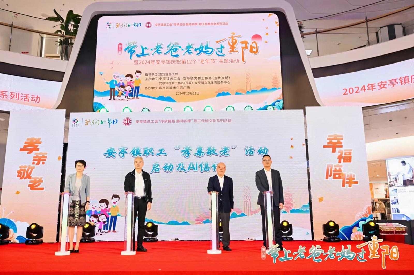 重阳节是弘扬爱老敬老传统美德的节日,每年值此之际,安亭镇为基层职工和他们的家人搭建了一个同庆同乐、欢聚共融的舞台,倡议广大职工在繁忙工作之余,给家中的长者多一些陪伴和关怀,该活动已连续开展八年,以丰富的活动形式为广大职工家中长者送上诚挚的节日祝福。