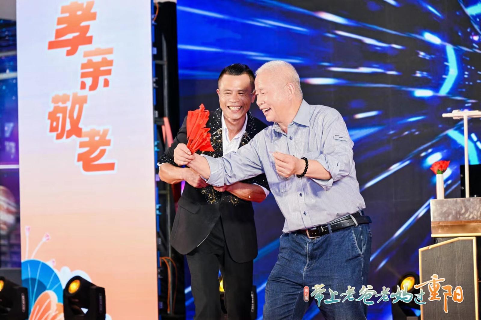 沪上知名滑稽笑星潘前卫、陈靓带来了深受老一辈们喜爱的独脚戏《欢歌笑语》,用沪语方言、沪语歌曲等多种形式为老人们送上了节日的祝福。活动特意设置了滑稽戏、沪语歌等多个彰显上海本地特色的节目,让老曲种在新时代焕发生机,打开年轻人市场,通过培育相同的兴趣爱好,促进老年人与青年人之间的交流互动,增进代际理解和融合,营造和谐共融的家庭氛围。