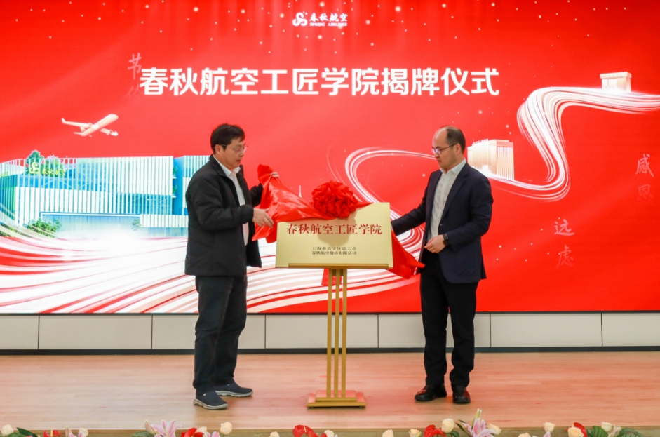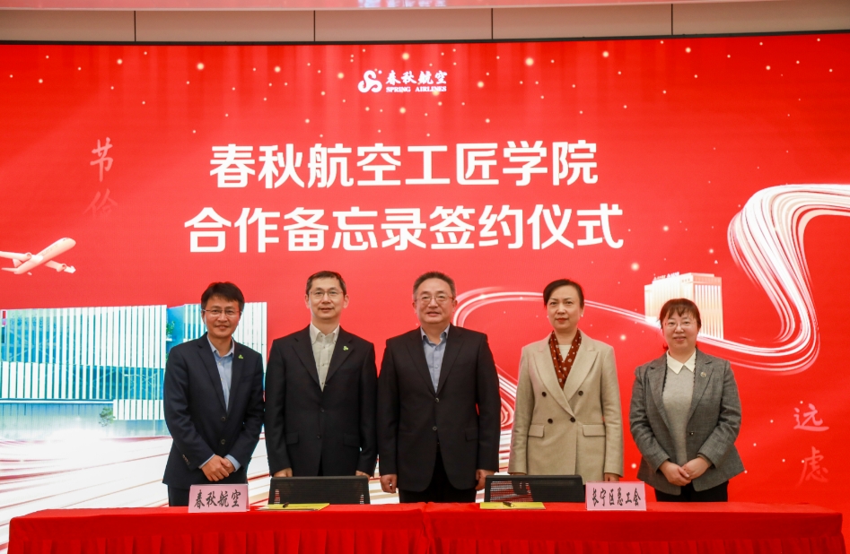 当天,在中共长宁区委书记张伟,长宁区人大常委会副主任、区总工会主席潘敏和春秋航空董事长、党委书记王煜的共同见证,长宁区总工会和春秋航空共同签署了春秋航空工匠学院合作备忘录。全国劳模、大国工匠、市总工会副主席王曙群和中共长宁区委副书记刘平共同为工匠学院揭牌。首批9名春秋航空工匠学院导师获颁聘任书。