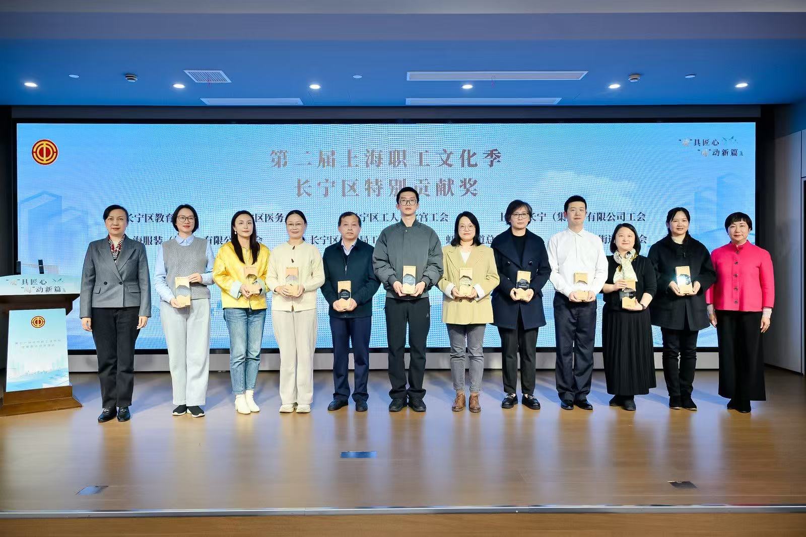 会上,长宁区工人文化宫青年职工代表们带来了精彩的迎接百年工运主题诵读,云南红河州工会干部以视频的形式对长宁区总今年捐赠2000册图书表示感谢,与会领导还为第二届上海职工文化季上长宁特别贡献奖获奖单位、“三微”大赛获奖作者、第十一届长宁职工读书节优秀组织奖获奖单位进行了颁奖。