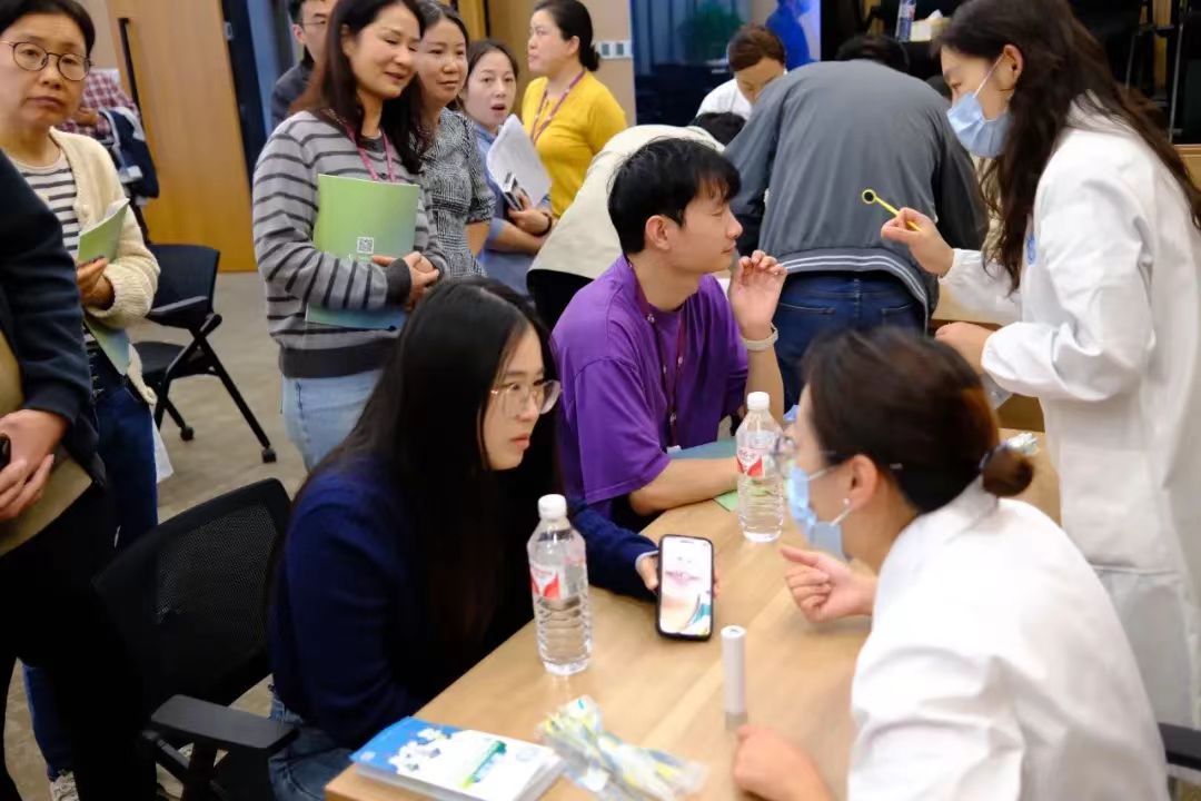 随后,嘉定区牙病防治所口腔科医生逐一为职工们进行全面的口腔检查,并详细记录他们存在的口腔健康问题,同时,针对他们不同的口腔问题提供建议。“平时我们因工作繁忙没有时间专程去医院检查,有小病也拖着,前段时间我的智齿发炎,这次正好有机会咨询一下。”职工丁静岚表示。