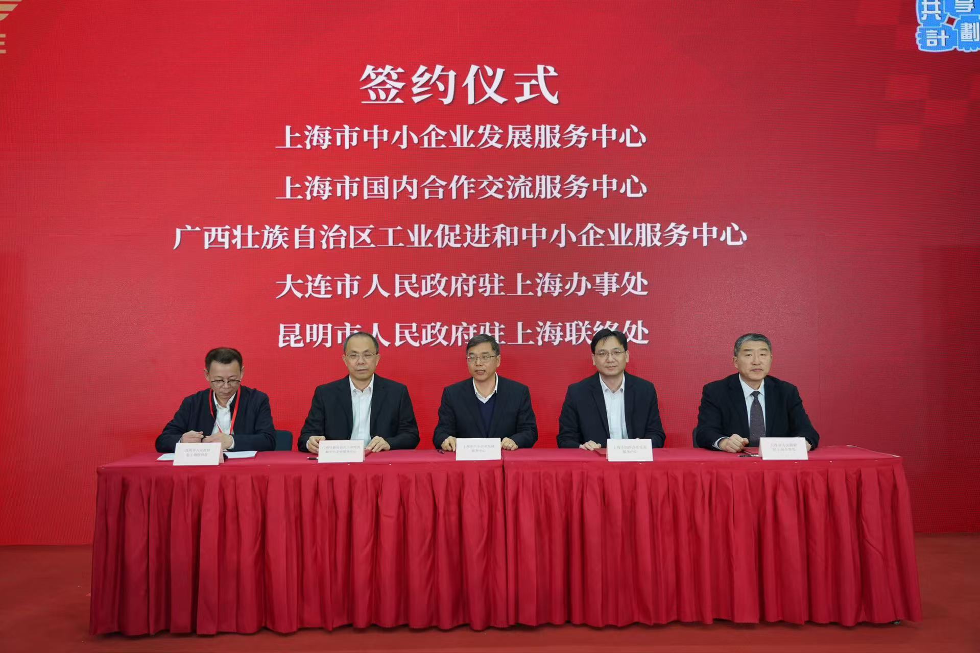 活动上,上海市中小企业发展服务中心与上海市国内合作交流服务中心、广西壮族自治区工业促进和中小企业服务中心、大连市人民政府驻上海办事处、昆明市人民政府驻上海联络处分别签署了战略合作协议,以期深化落实区域合作和对口帮扶工作,进一步加强沪桂、沪连、沪昆企业优势互补、合作共赢。