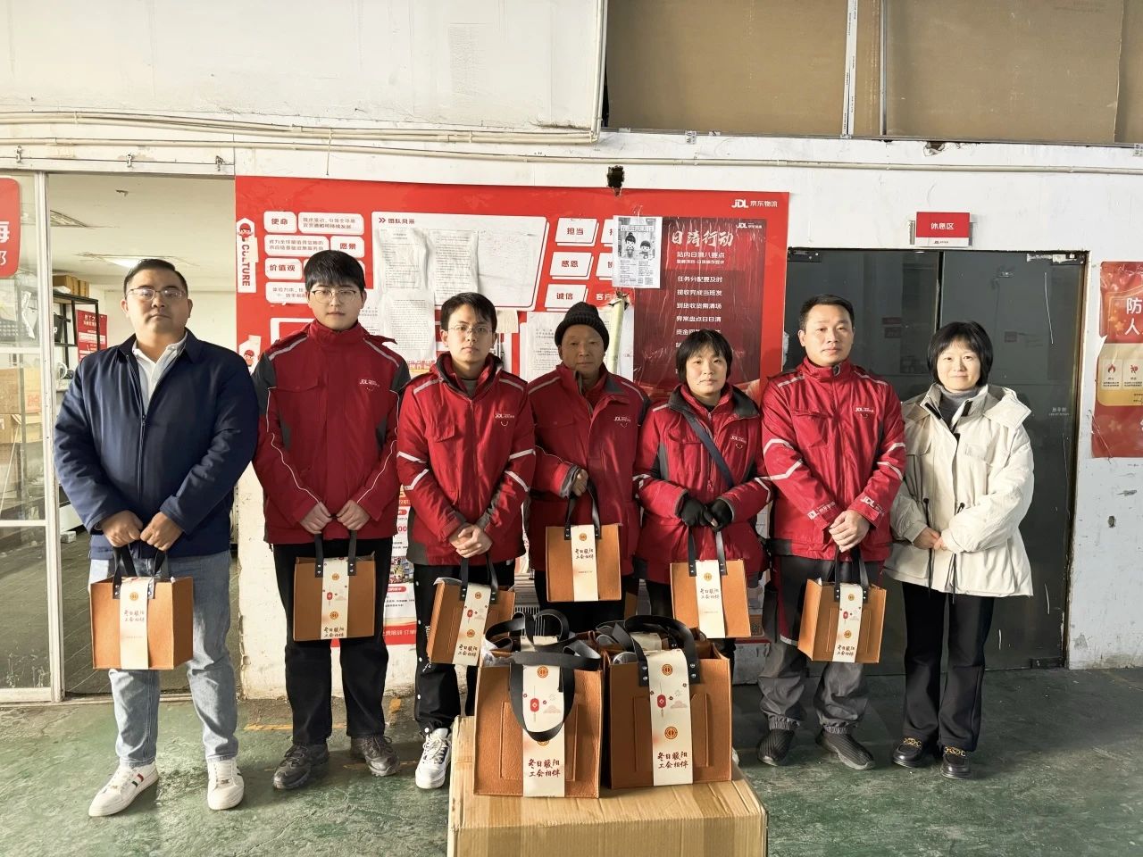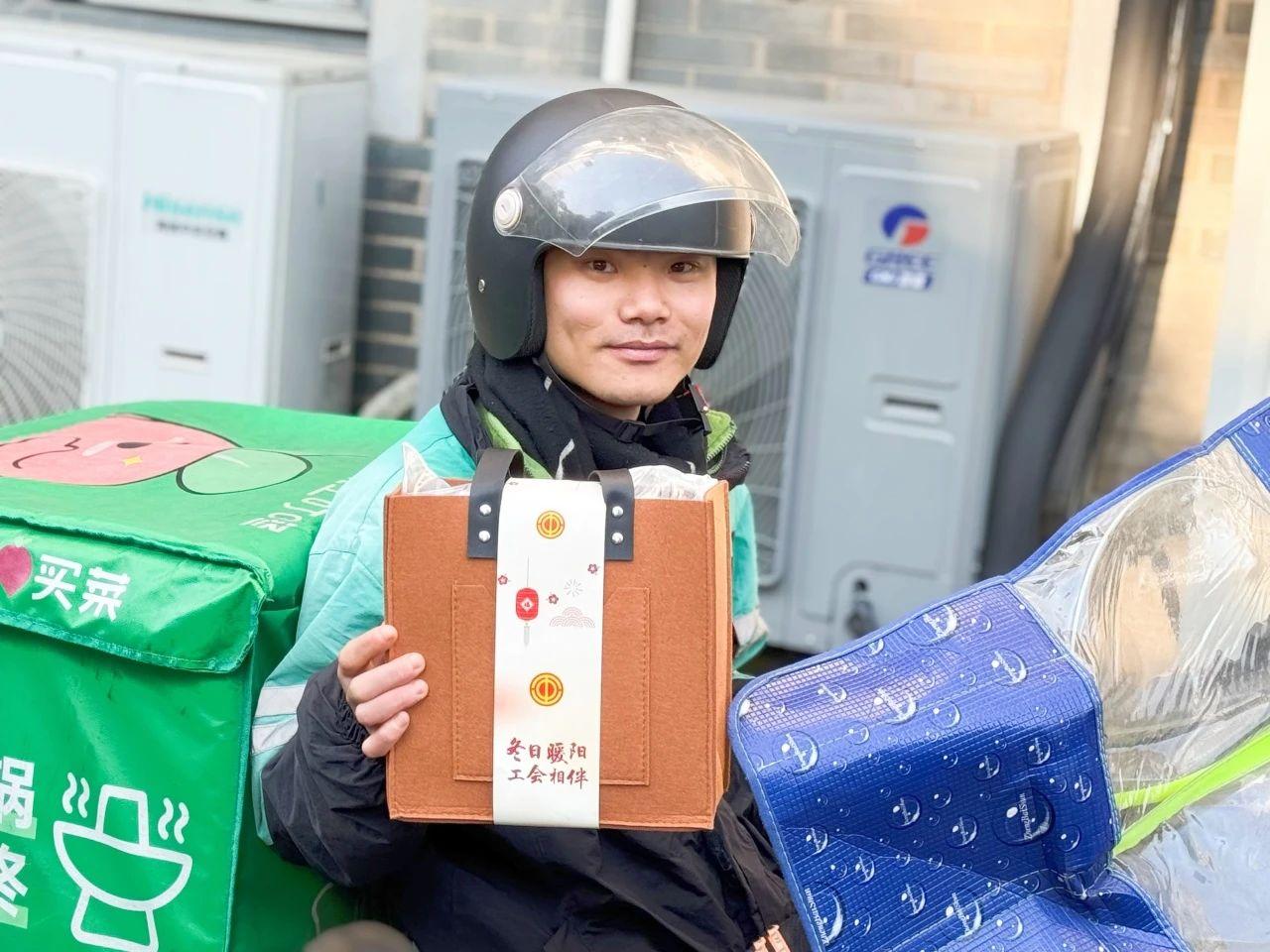 而在张庙街道,另一场暖心行动也正在进行。“冬日暖阳,工会相伴”送温暖活动,为300余名快递员、外卖骑手送来了防风面罩、保暖手套等实用物资,还贴心准备了护手霜和暖宝宝等“雪中送炭”的好物。街道总工会提前调研小哥们的实际需求,用细致周到的礼包内容送上冬日的特别关怀。叮咚买菜的骑手林建波开心地说:“这份温暖包让我工作起来不再怕冷,心里也更有劲了!”当天,张庙街道人大工委副主任、总工会主席陈娇带队走访站点,为一线劳动者送去节日问候。