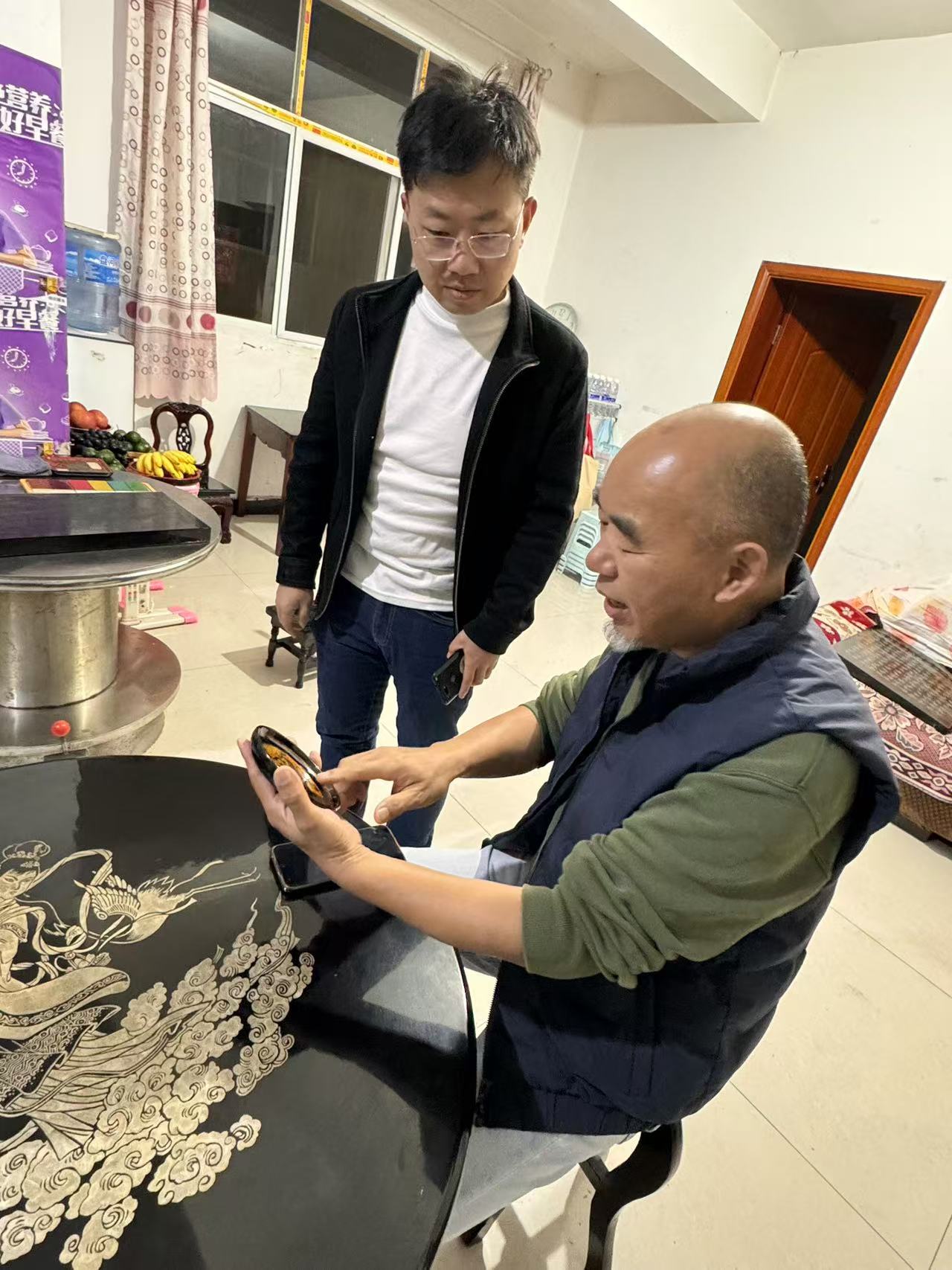 在考察团赴云南期间,工匠的技艺也成为了助力当地非遗发展的重要助力。在位于昭通老街的严朝俊漆刻工作室,蒋中庆、袁金祥两位来自家具行业的上海工匠,认真了解了云南省级非遗项目“昭通漆刻”,通过分析评估漆刻技艺的历史传承、发展现状和市场需求,对其提出优化建议。经过多次沟通、指导和实践,“海派”揩漆工艺在当地刻漆95%的工序中得到应用。通过在原有工序中增加30%的披麻、砂叶精磨和揩复漆的工艺,产品质量得到大幅提升,观赏性、美观度得到增强。